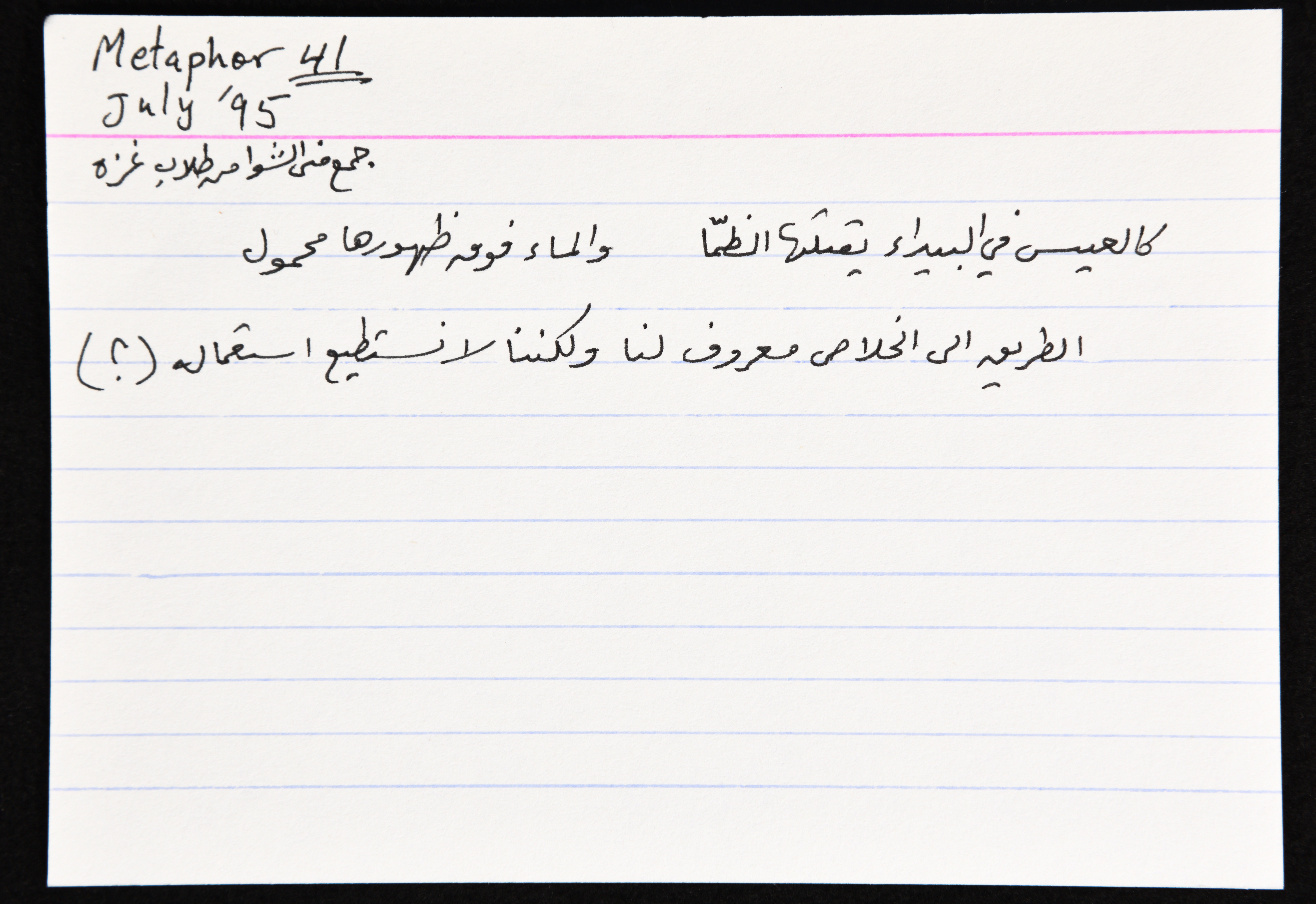 بطاقة وُثِّق عليها مثل شعبي بعنوان "كالعيش في البيداء"
