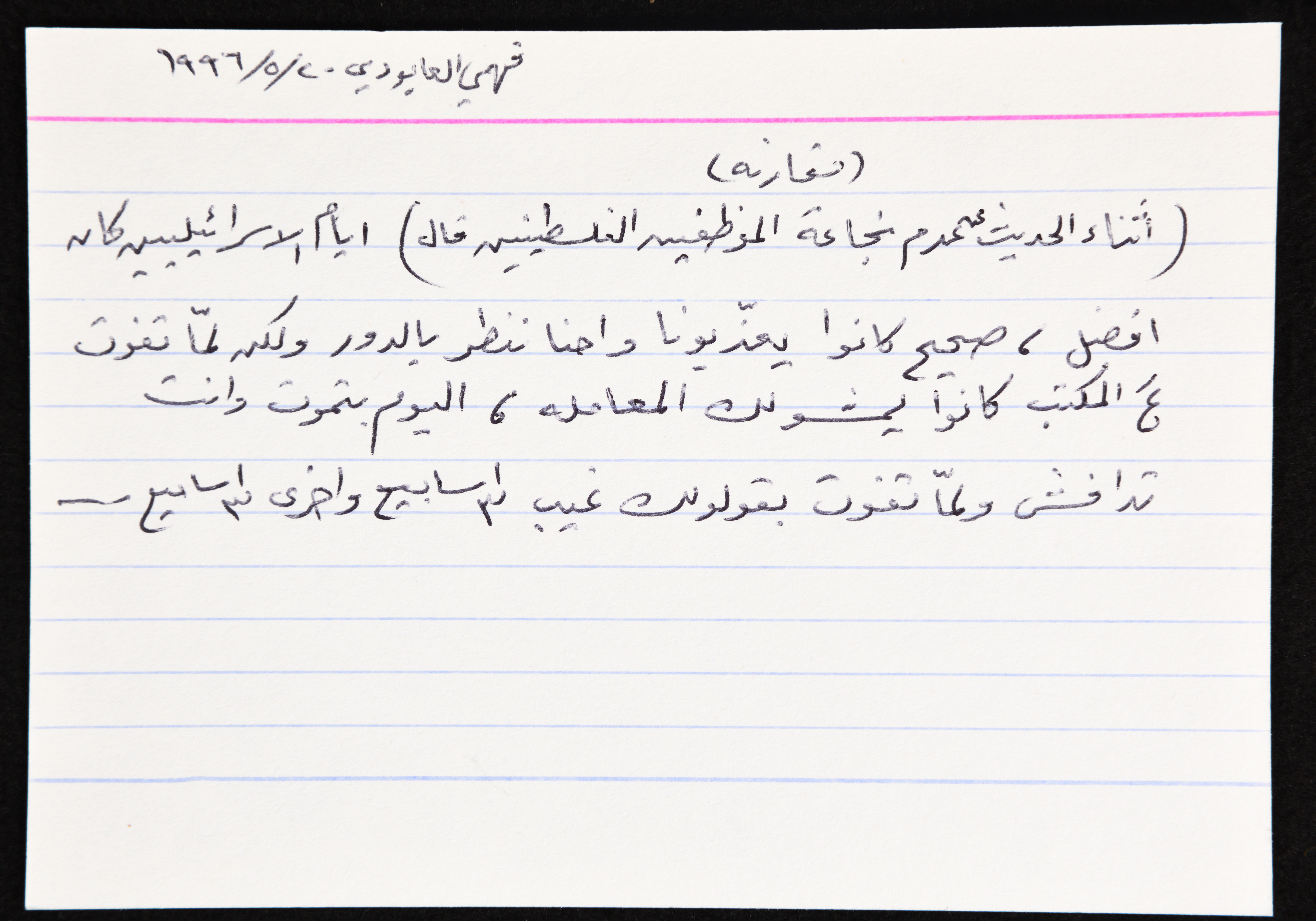 بطاقة وُثِّق عليها مقارنة حول عدم شجاعة الموظفين الفلسطينيين