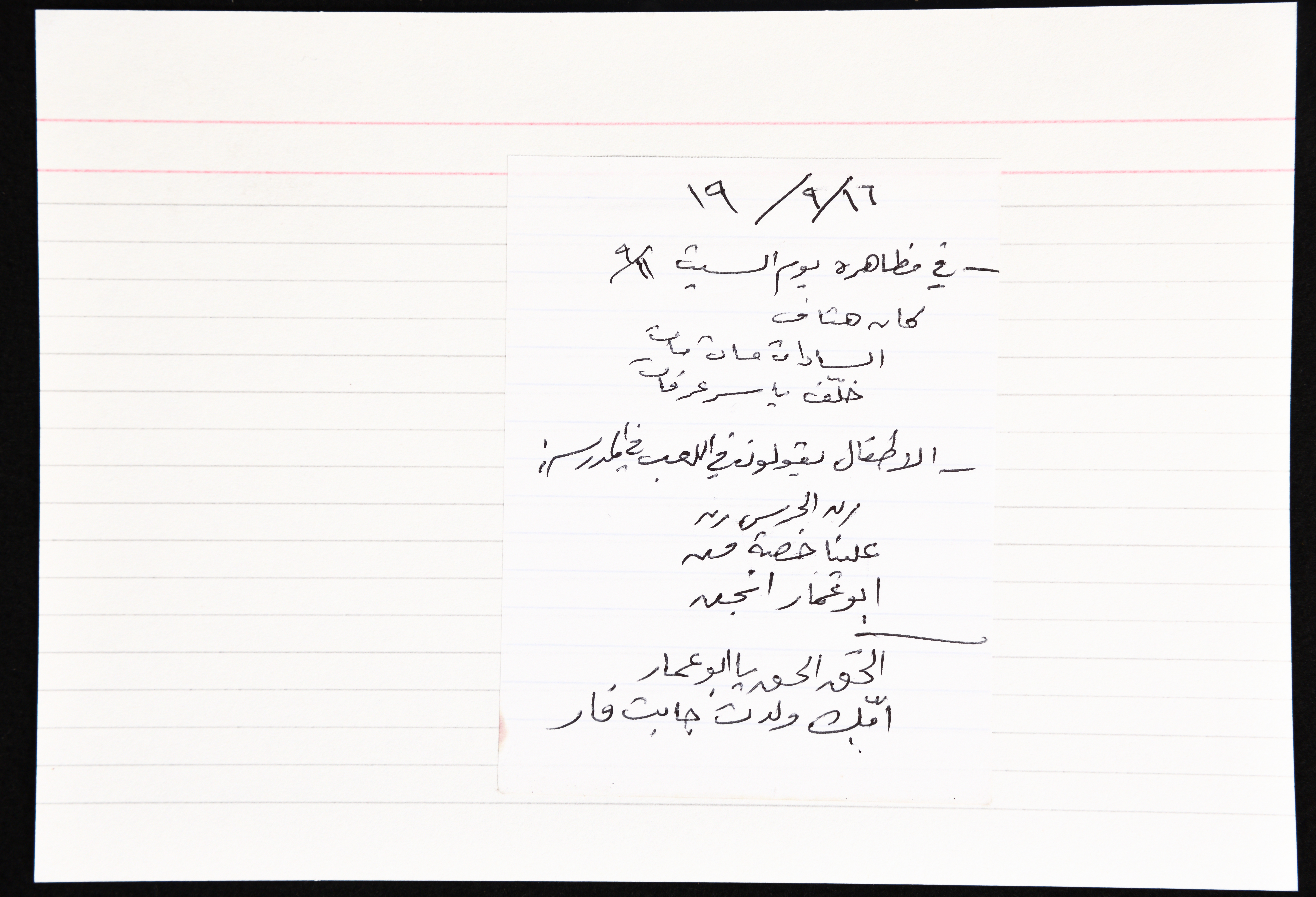 بطاقة وُثِّق عليها حكاية ونكتة بعنوان "الحق الحق يا ابو عمار"