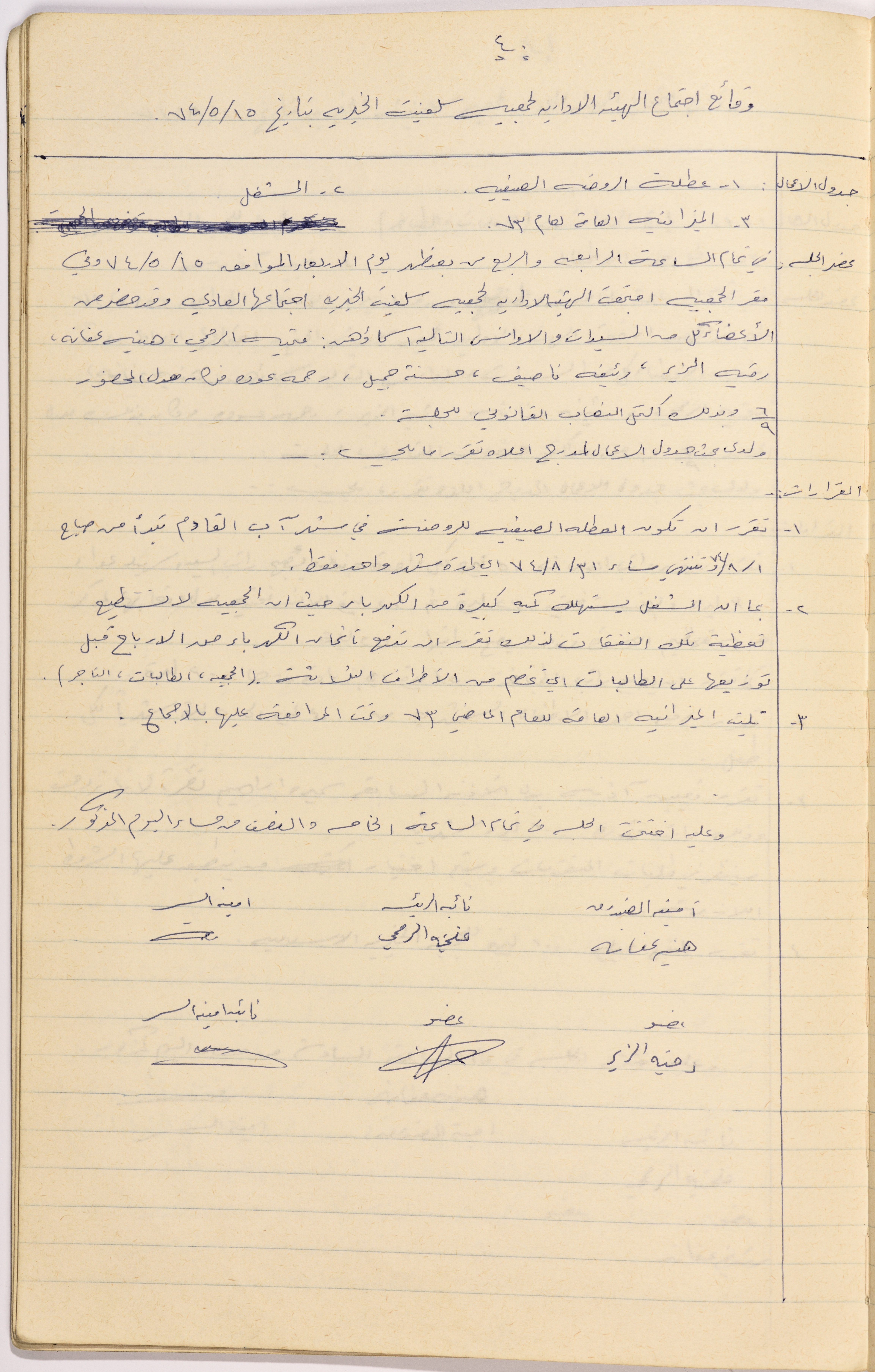 محضر اجتماع الهيئة الإدارية لجمعية سلفيت النسائية الخيرية بتاريخ 15\5\1974
