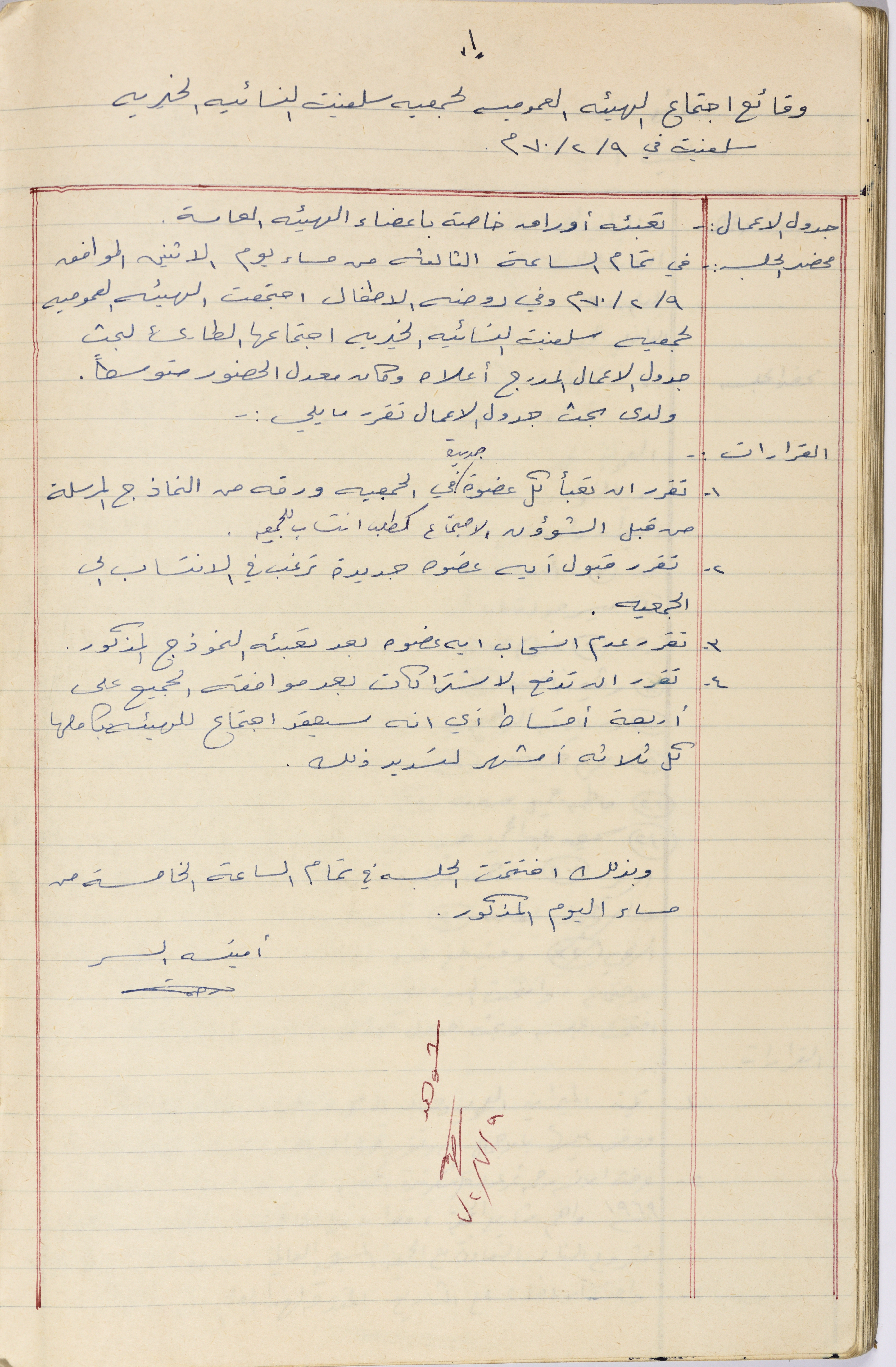 Meeting minutes of the Salfeet Women Charity's public body meeting dated 970