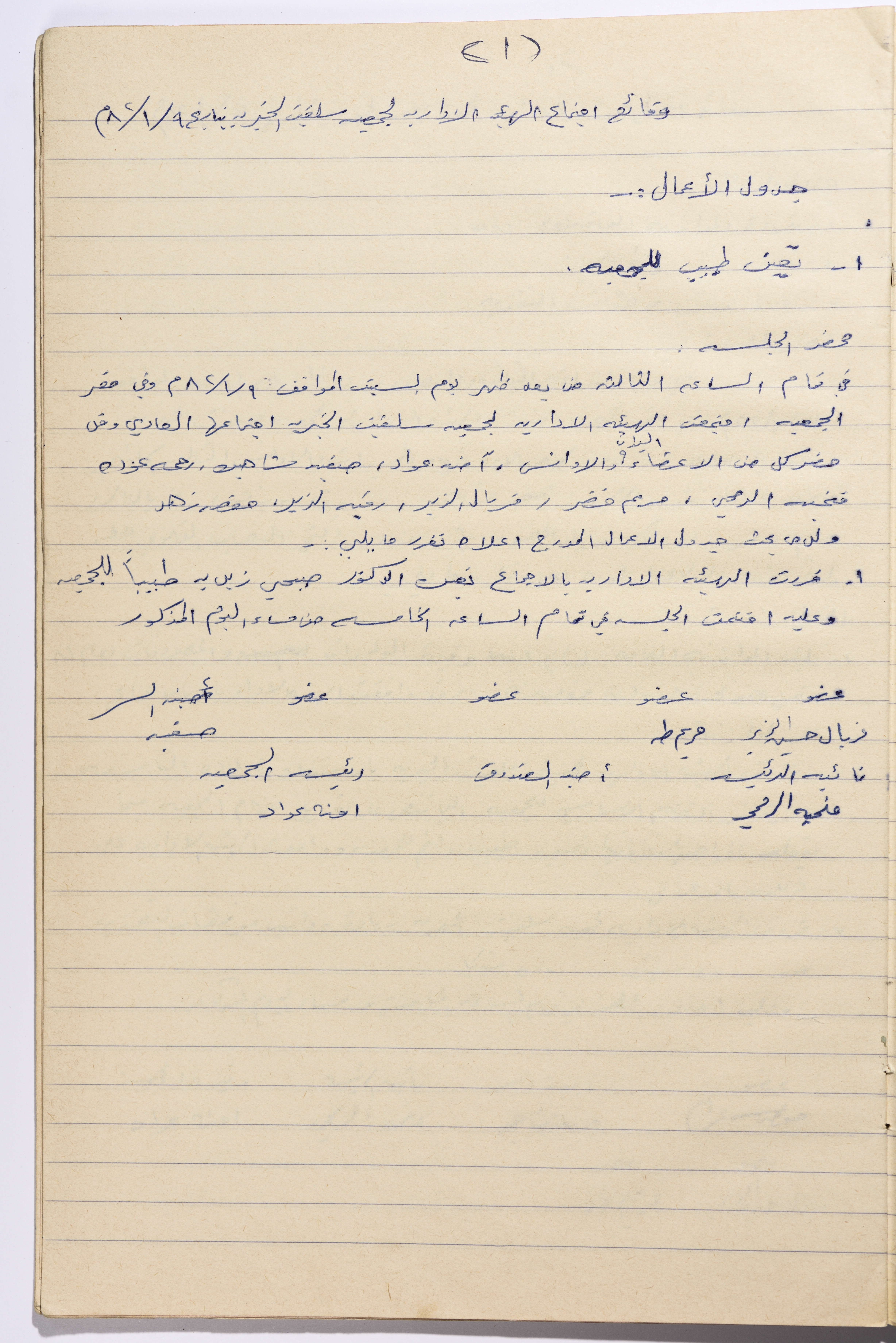 A document containing the meeting minutes of the administrative body of the Salfeet Women Charity. The meeting discussed appointing a doctor for the Charity. 8 women attended decisions The administrative body decided to appoint Subhi Zaid as the Charity's doctor.