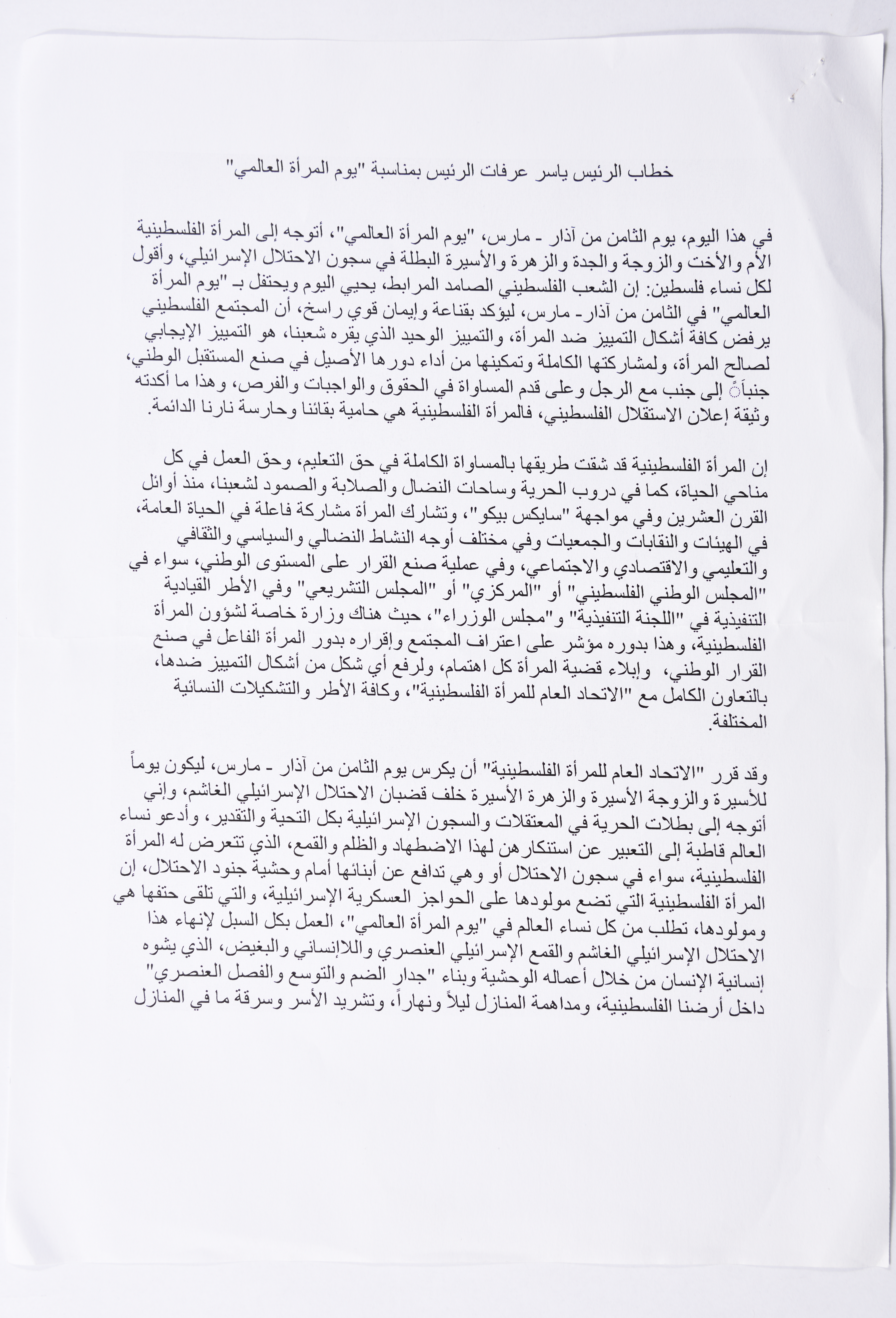 خطاب الرئيس ياسر عرفات في يوم المرأة العالمي
