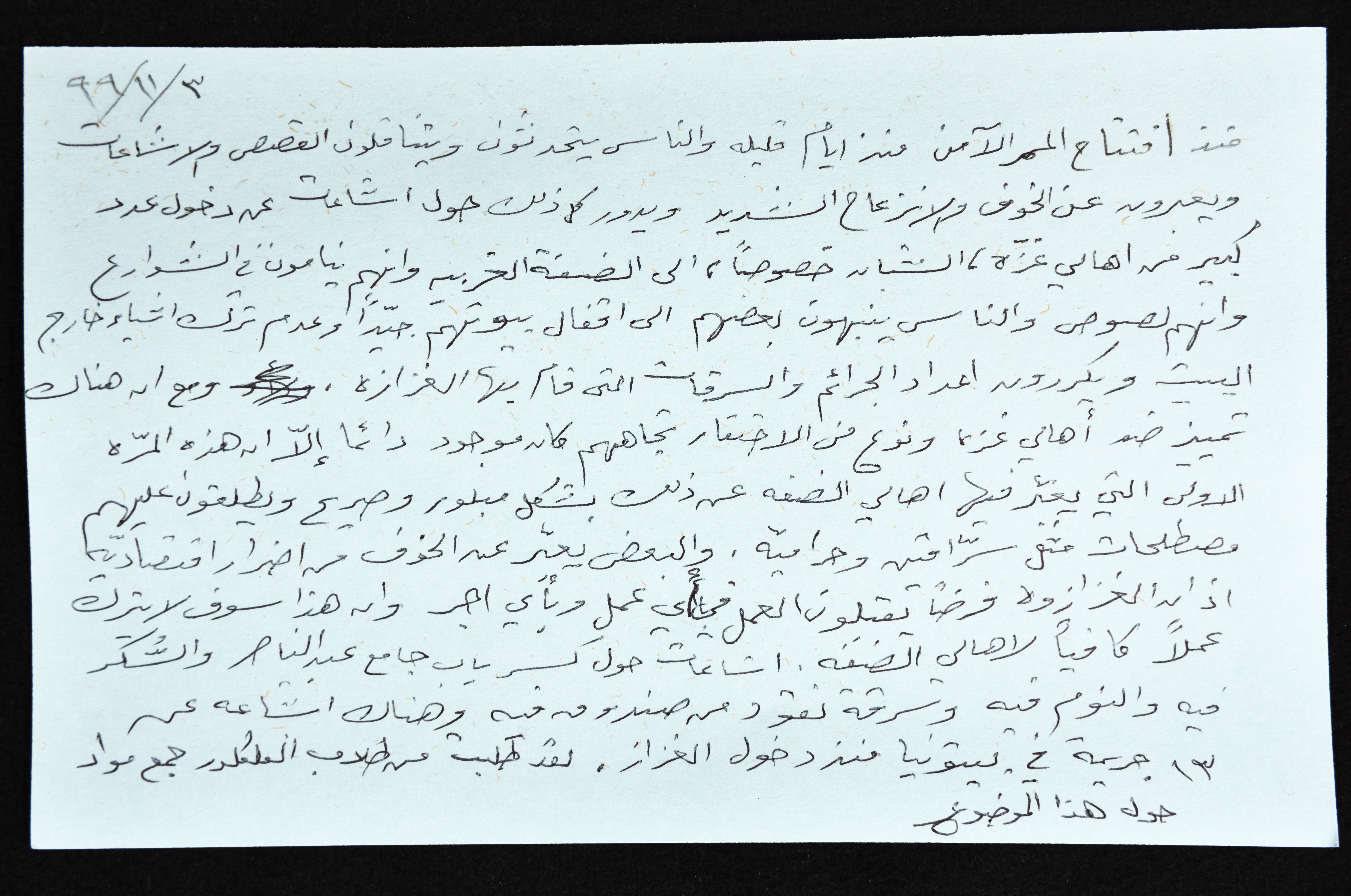 بطاقة وُثِّق عليها حكاية من الانتفاضة بعنوان "بعد فتح الممر الآمن"