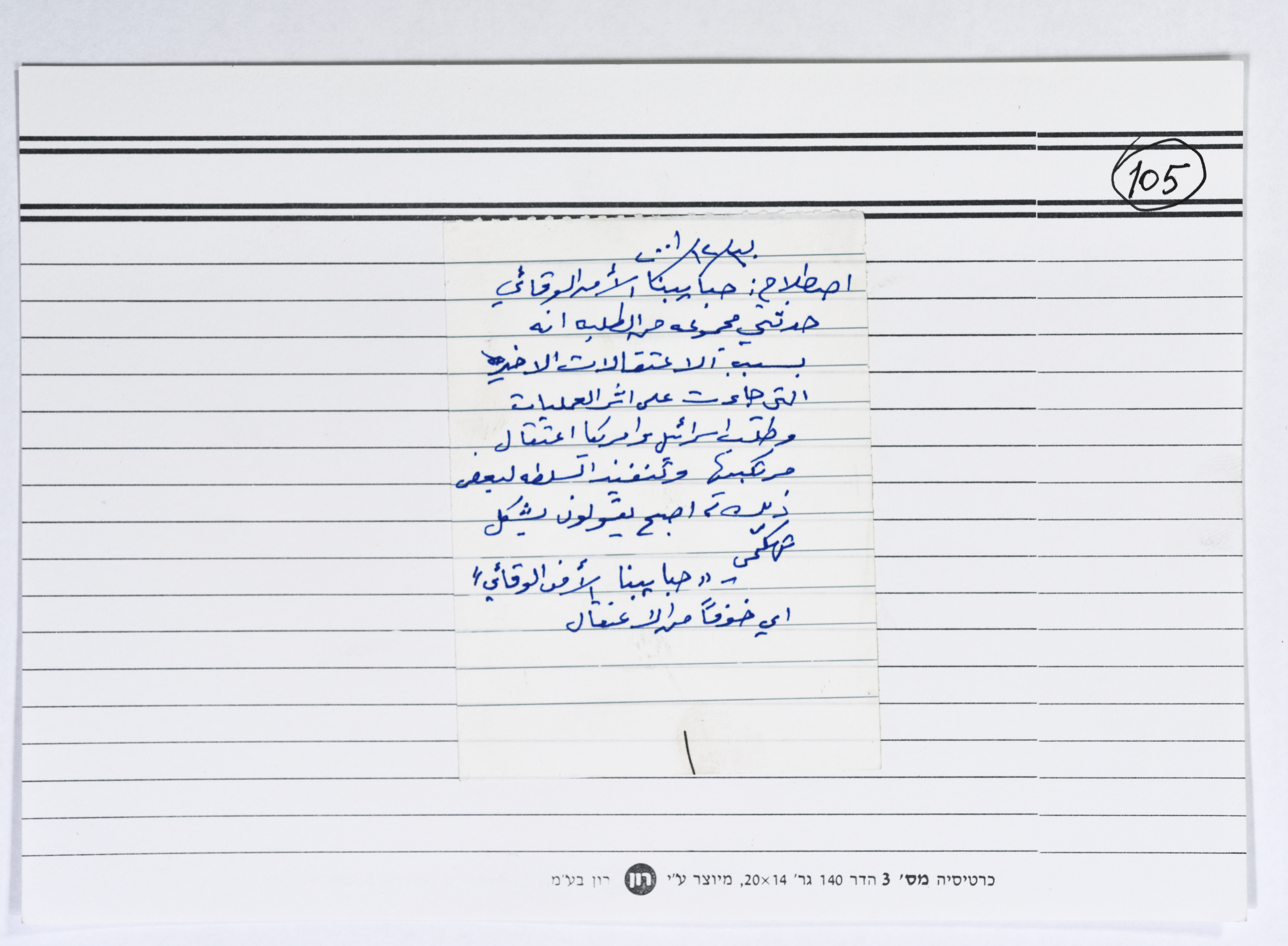 بطاقة وُثِّق عليها اصطلاح "حبايبنا الأمن الوقائي"