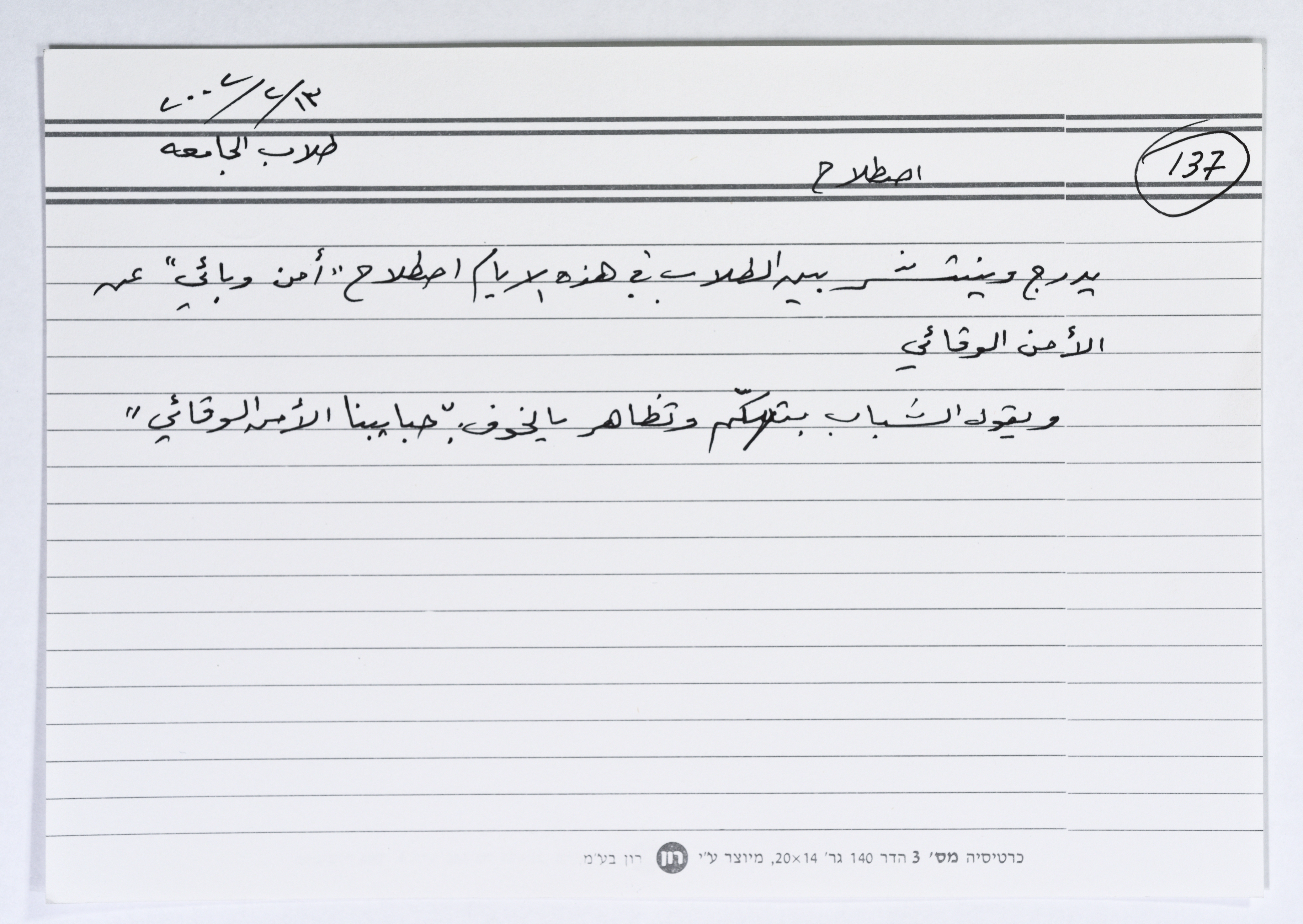 بطاقة وُثِّق عليها اصطلاح من الانتفاضة بعنوان "أمن وبائي"