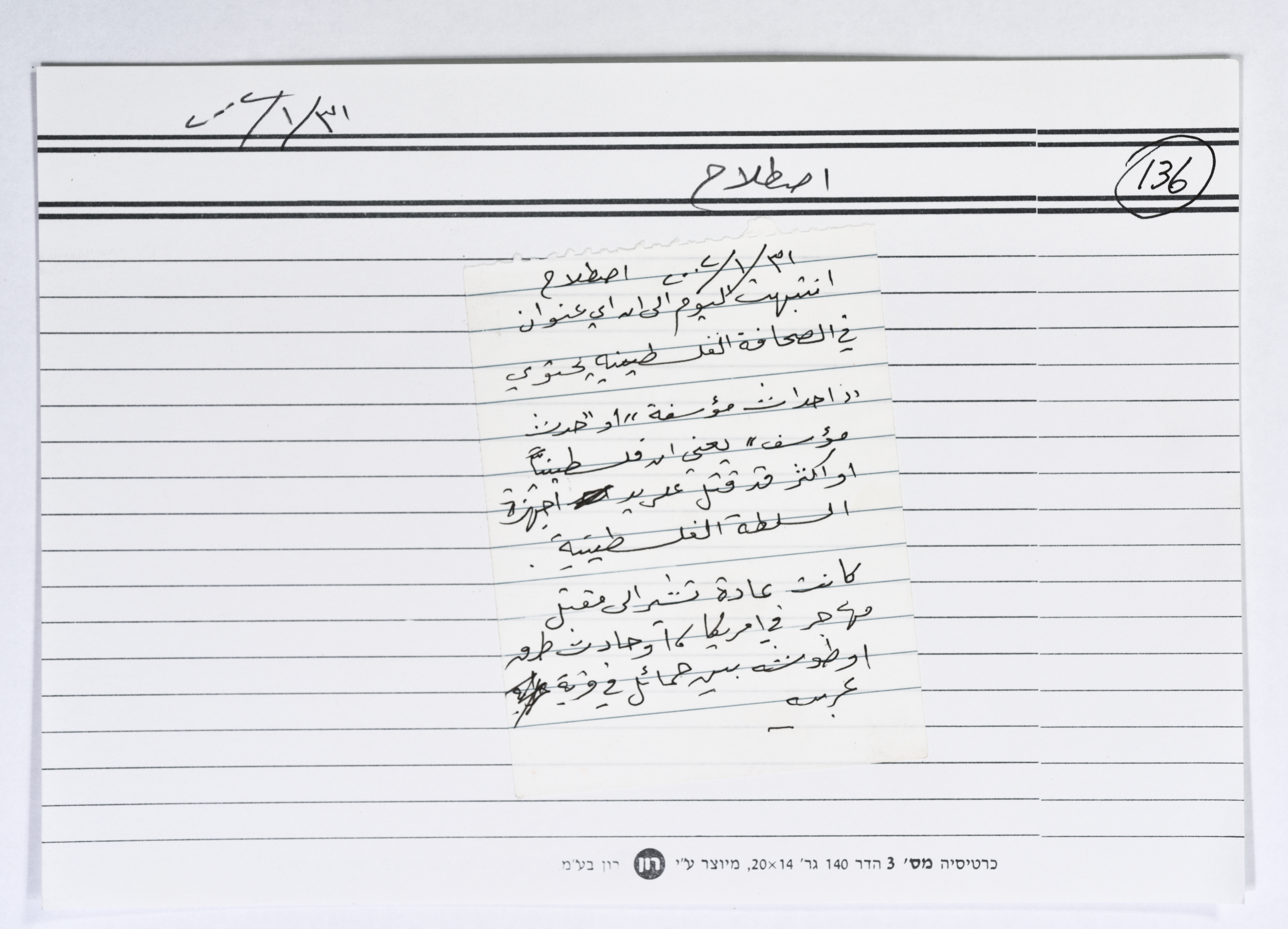 بطاقة وُثِّق عليها اصطلاح من الانتفاضة بعنوان "أحداث مؤسفة"