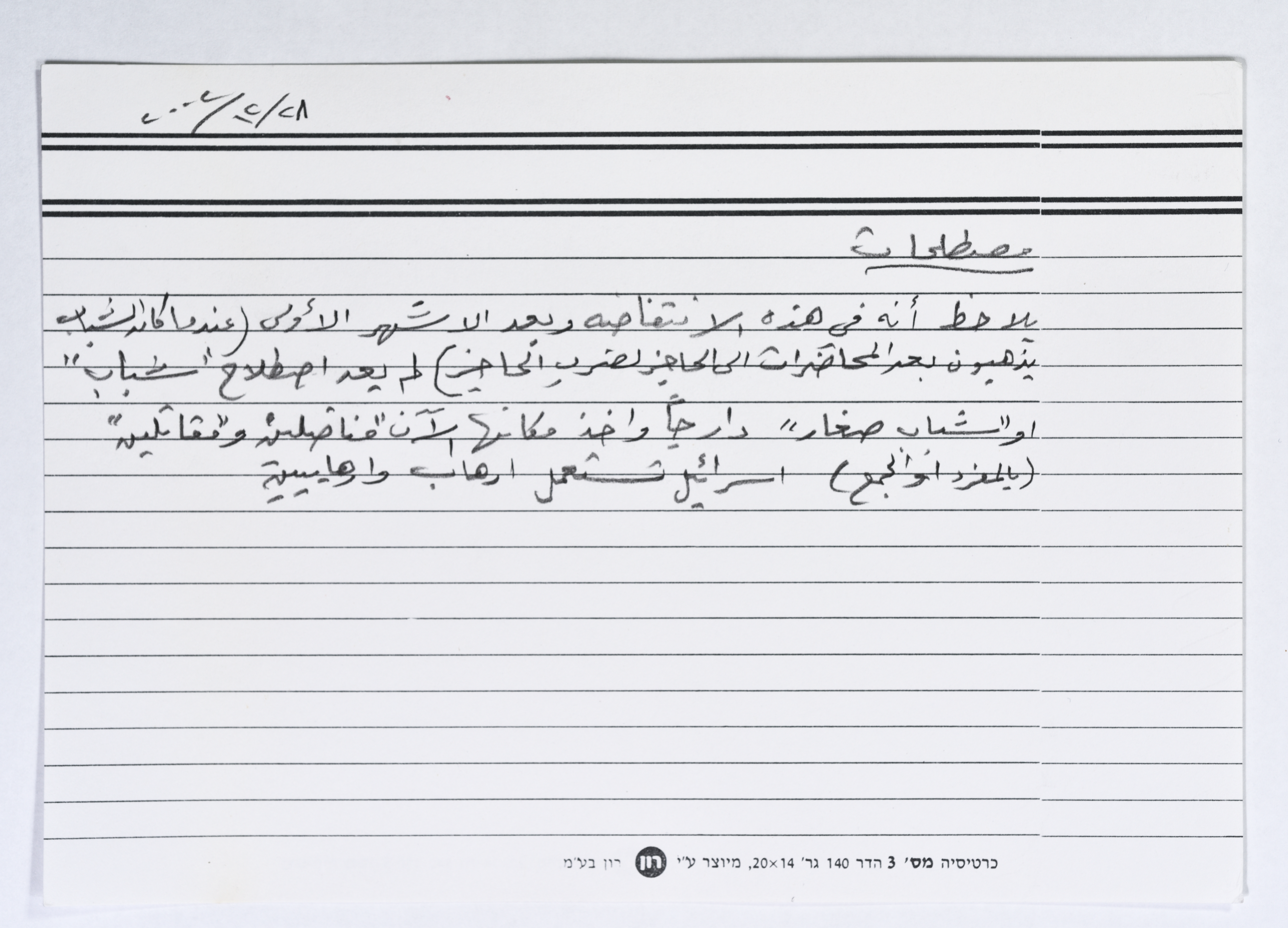 بطاقة وُثِّق عليها مصطلح"مناضلين,مقاتلين" انتشر خلال الإنتفاضة الثانية