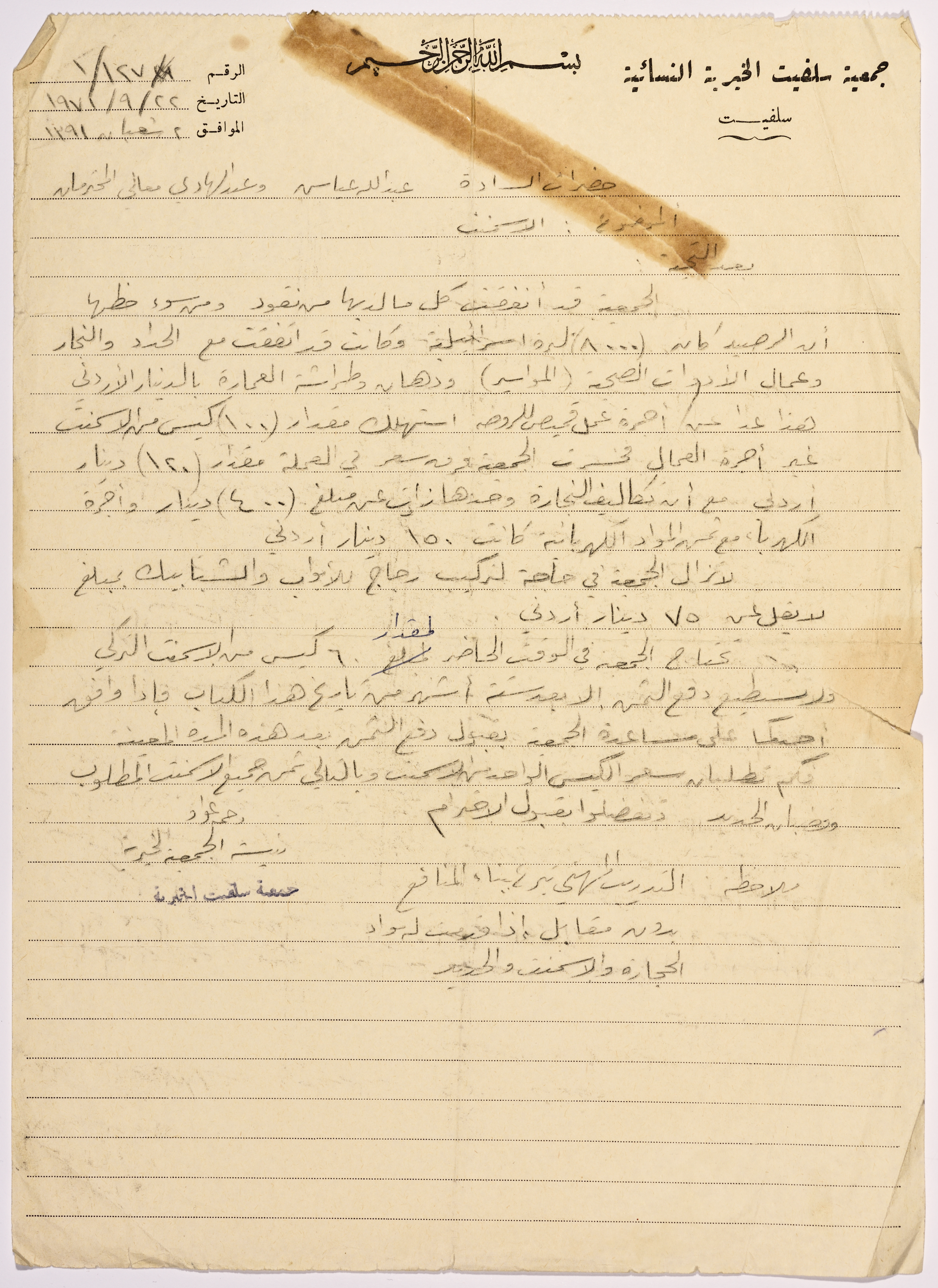 عزريل، سمر، "جمعية سلفيت النسائية الخيرية"، جرد أرشيفي، 20 حزيران 2018، أرشيف المتحف الفلسطيني الرقمي. ;عزريل، سمر، "جمعية سلفيت النسائية الخيرية"، جرد أرشيفي، 13 آب 2018، أرشيف المتحف الفلسطيني الرقمي.