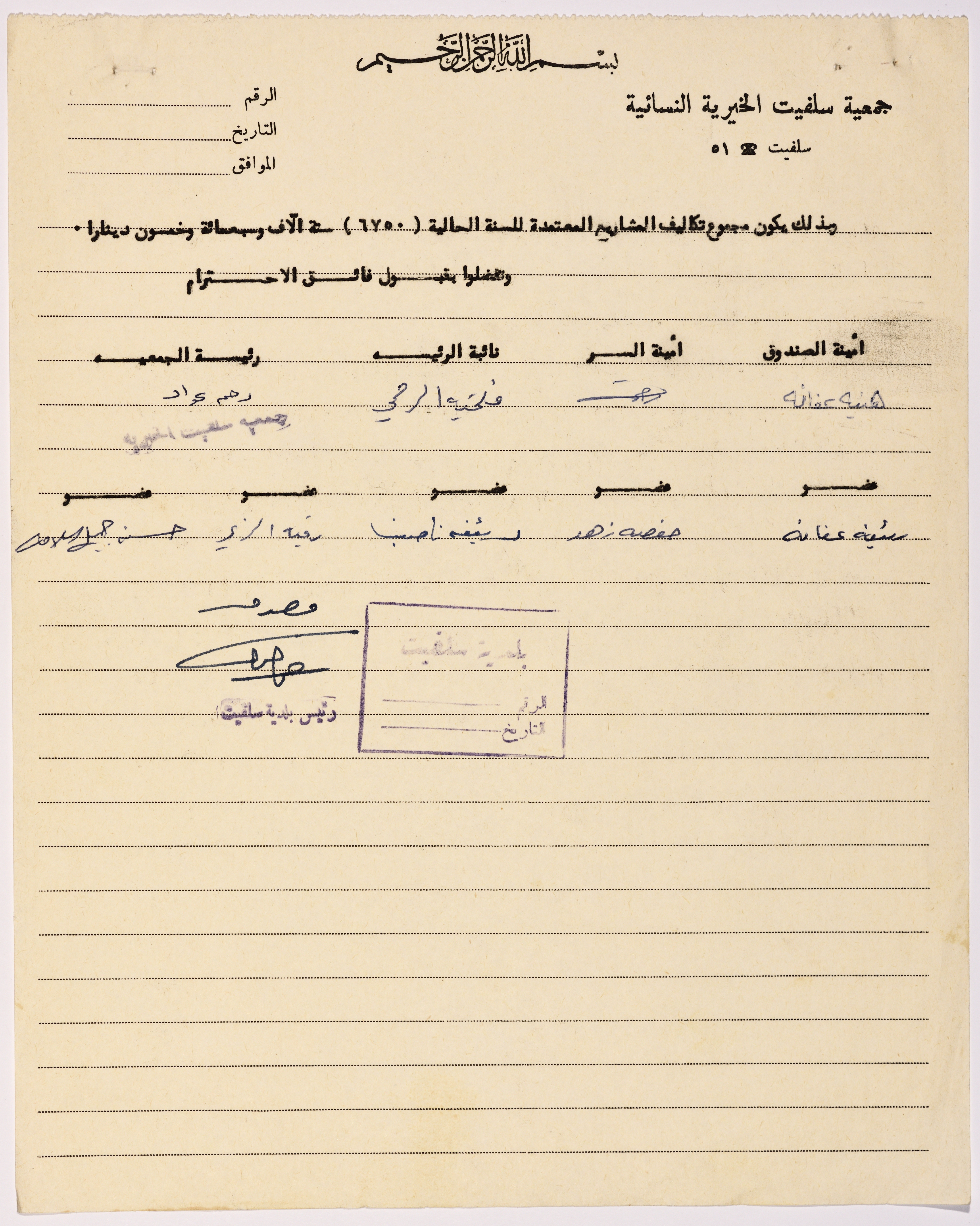 Ozrail, Samar, "Salfeet Women Charity Collection," archival inventory, 20 June 2018, the Palestinian Museum Digital Archive.;Ozrail, Samar, "Salfeet Women Charity Collection," archival inventory, 13 August 2018, the Palestinian Museum Digital Archive.