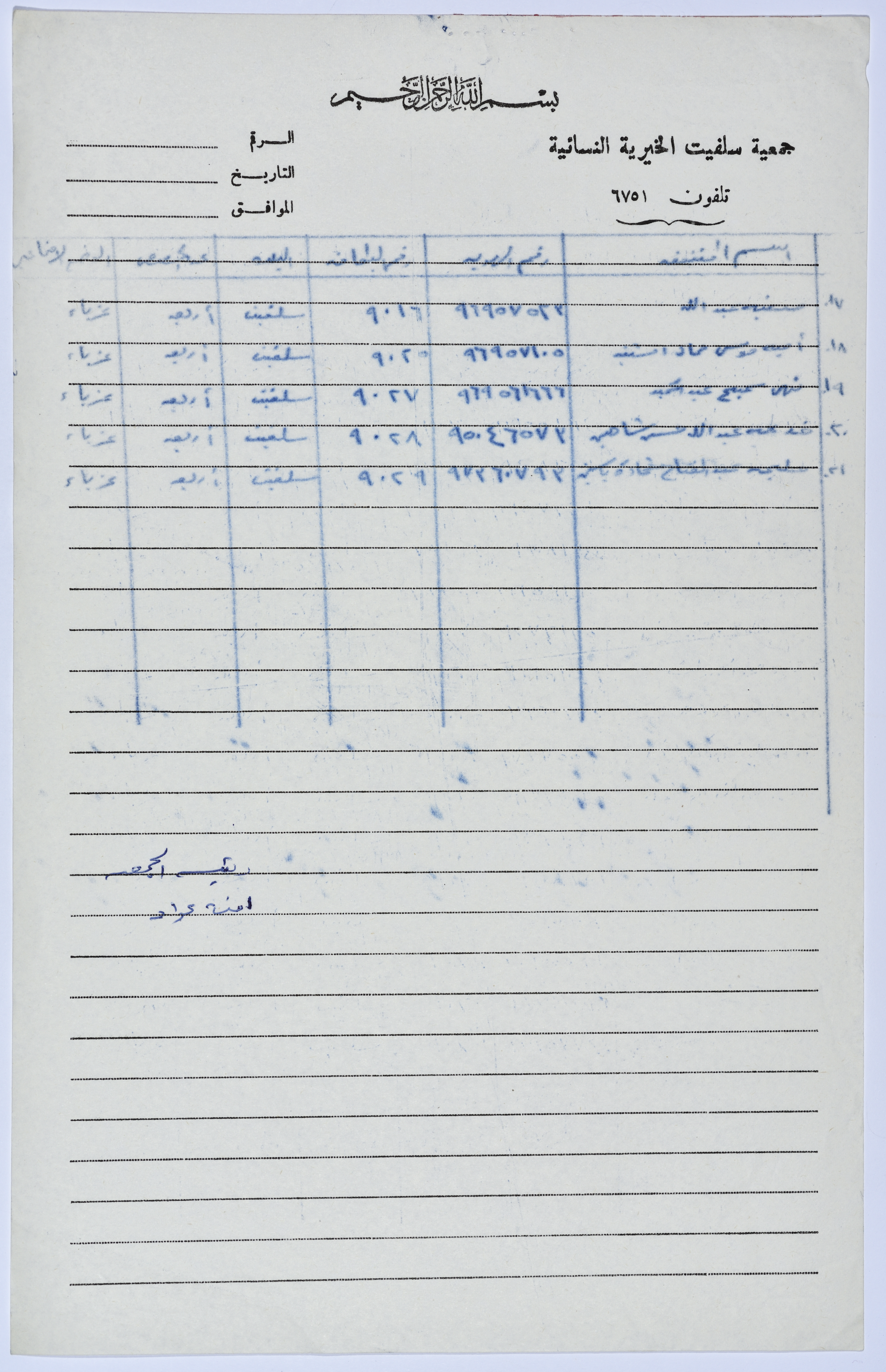 كشف بأسماء العاملات في مشغل الخياطة التابع لجمعية سلفيت الخيرية عام 1983
