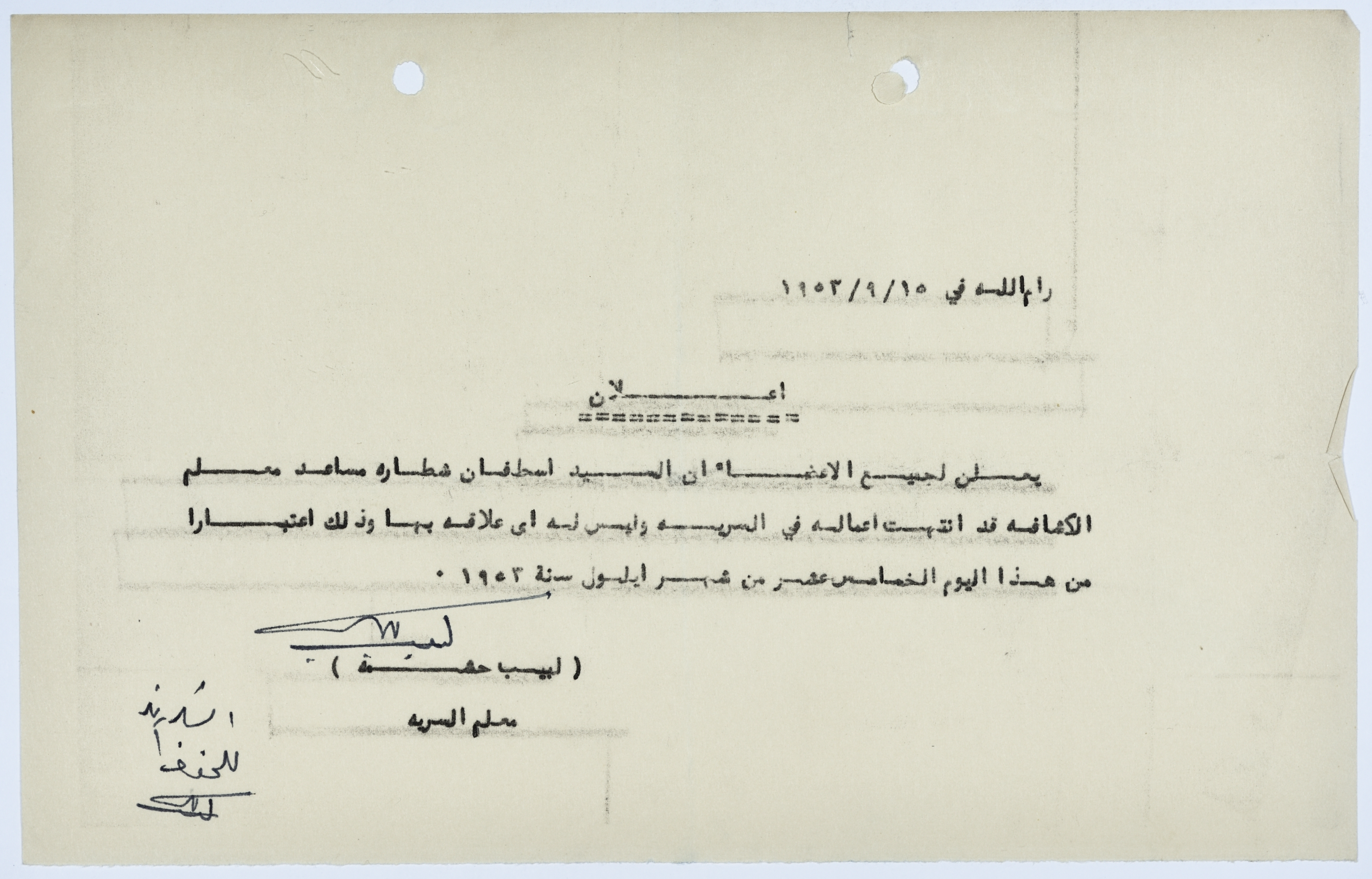 An Announcement Regarding the Expiration of ʾistifan Shatarah's Work and Services