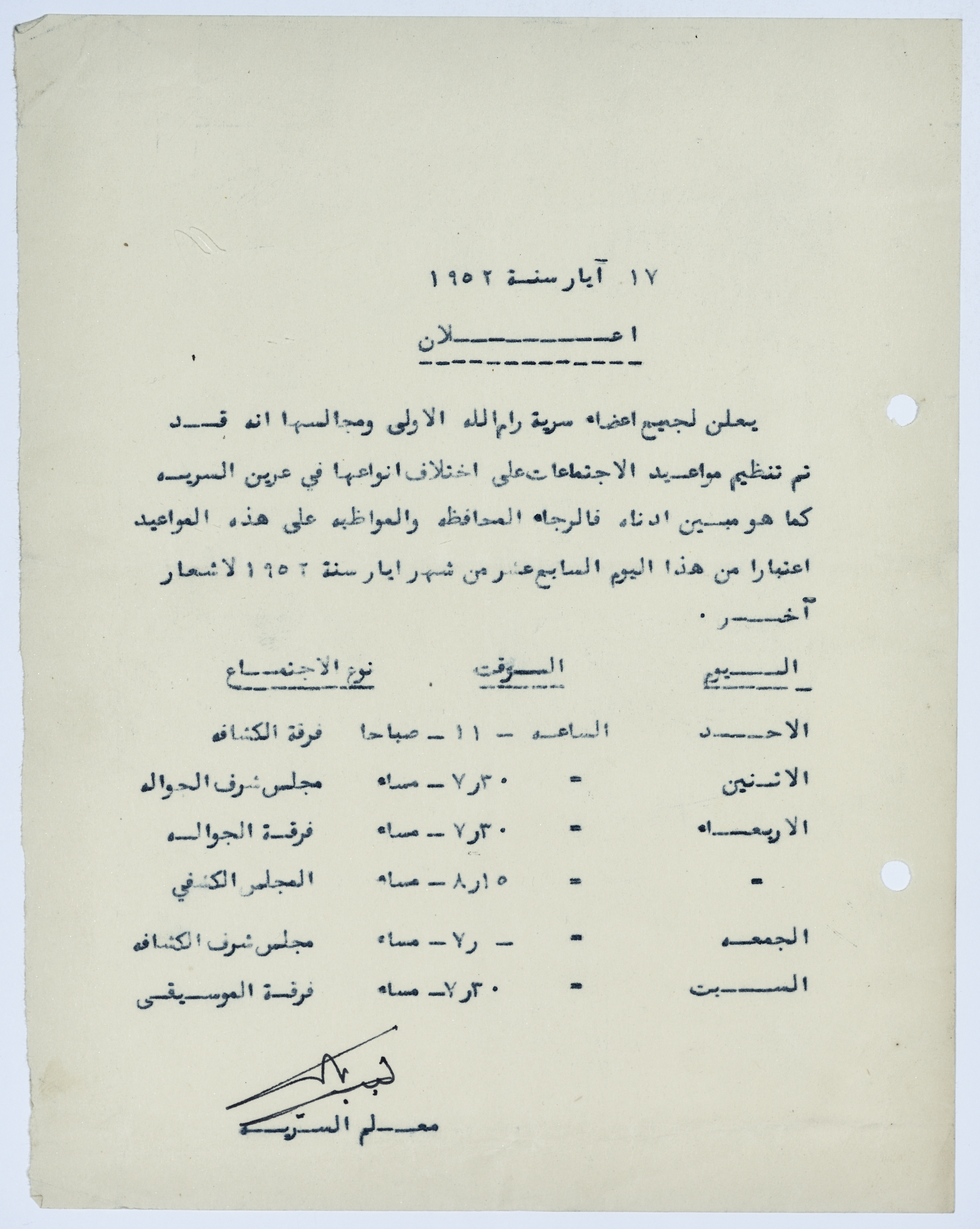 An Announcement Concerning Organising the Time Schedule of the Meetings Regardless it's Topics