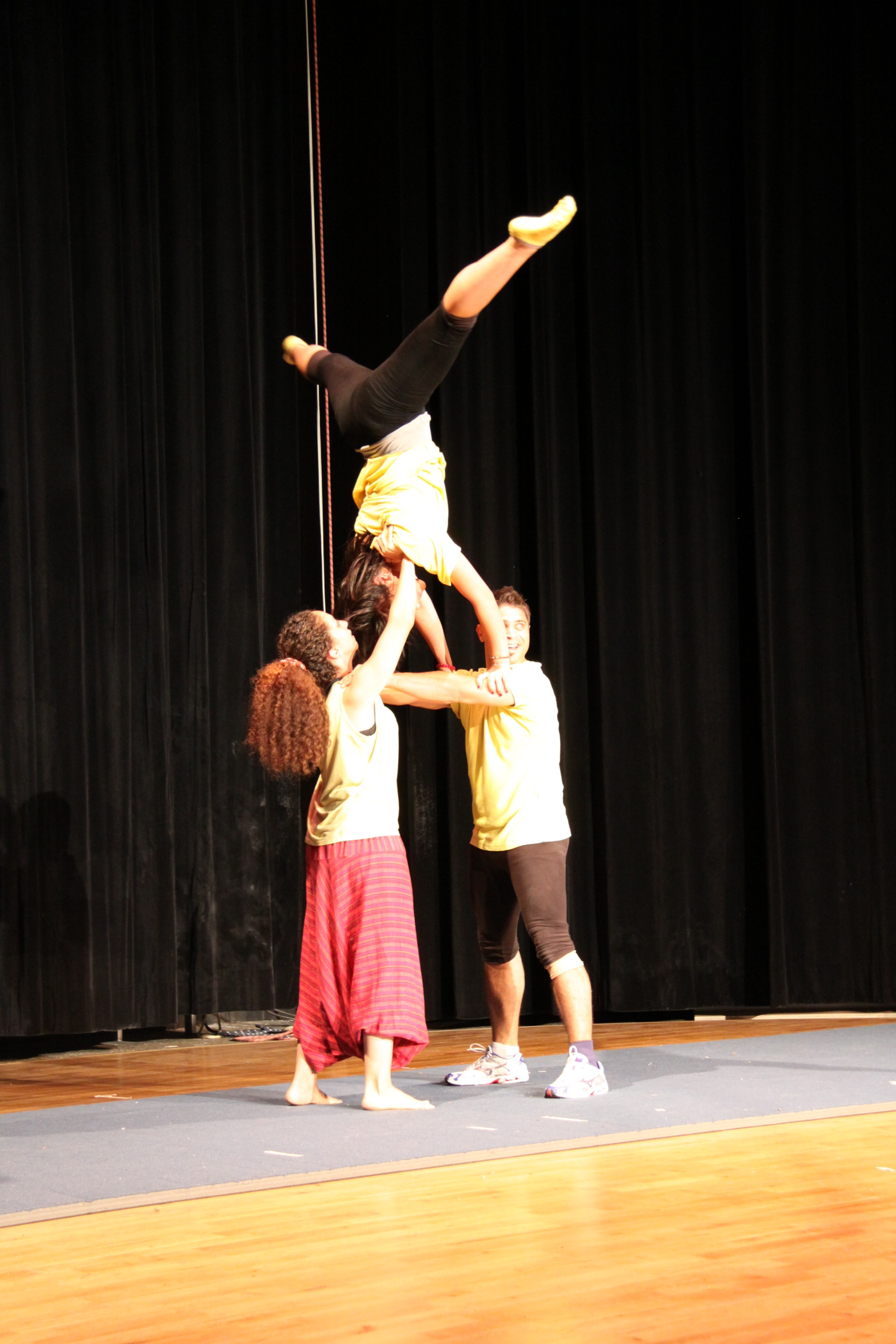 صورة ملونة من عرض "سيرك من خلف الجدار" الذي قدمته "مدرسة سيرك فلسطين" في مدينة تولوز في فرنسا، و يجسد عرض "سيرك من خلف الجدار" الحياة الواقعية للفلسطينيين: فصلهم عن عائلاتهم وأحبائهم وأرضهم ومائهم بواسطة جدار.