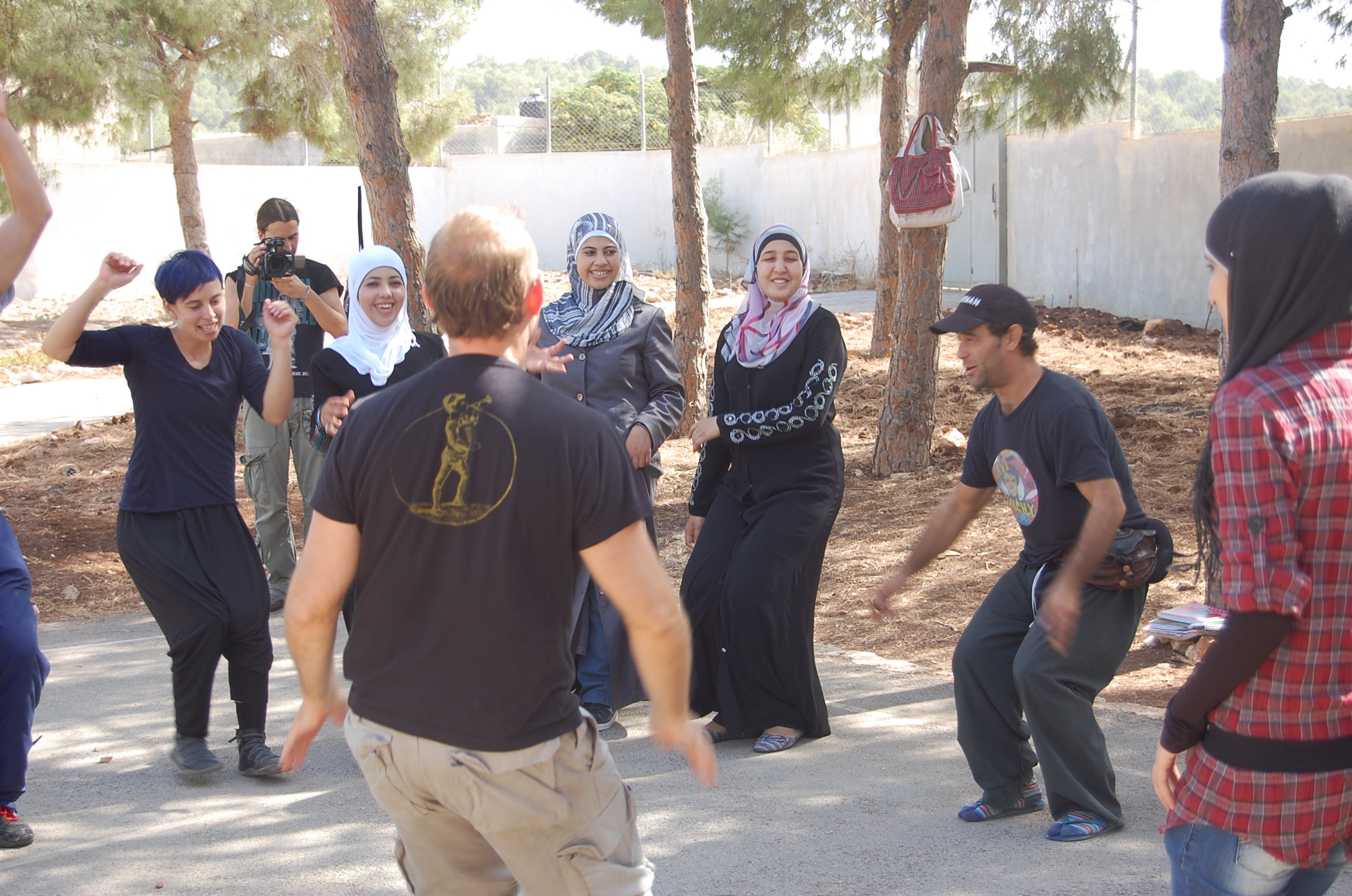 صورة ملونة من عروض من مهرجان "فيستيكلاون" أجريت في فلسطين بالتعاون مع "مدرسة سيرك فلسطين".