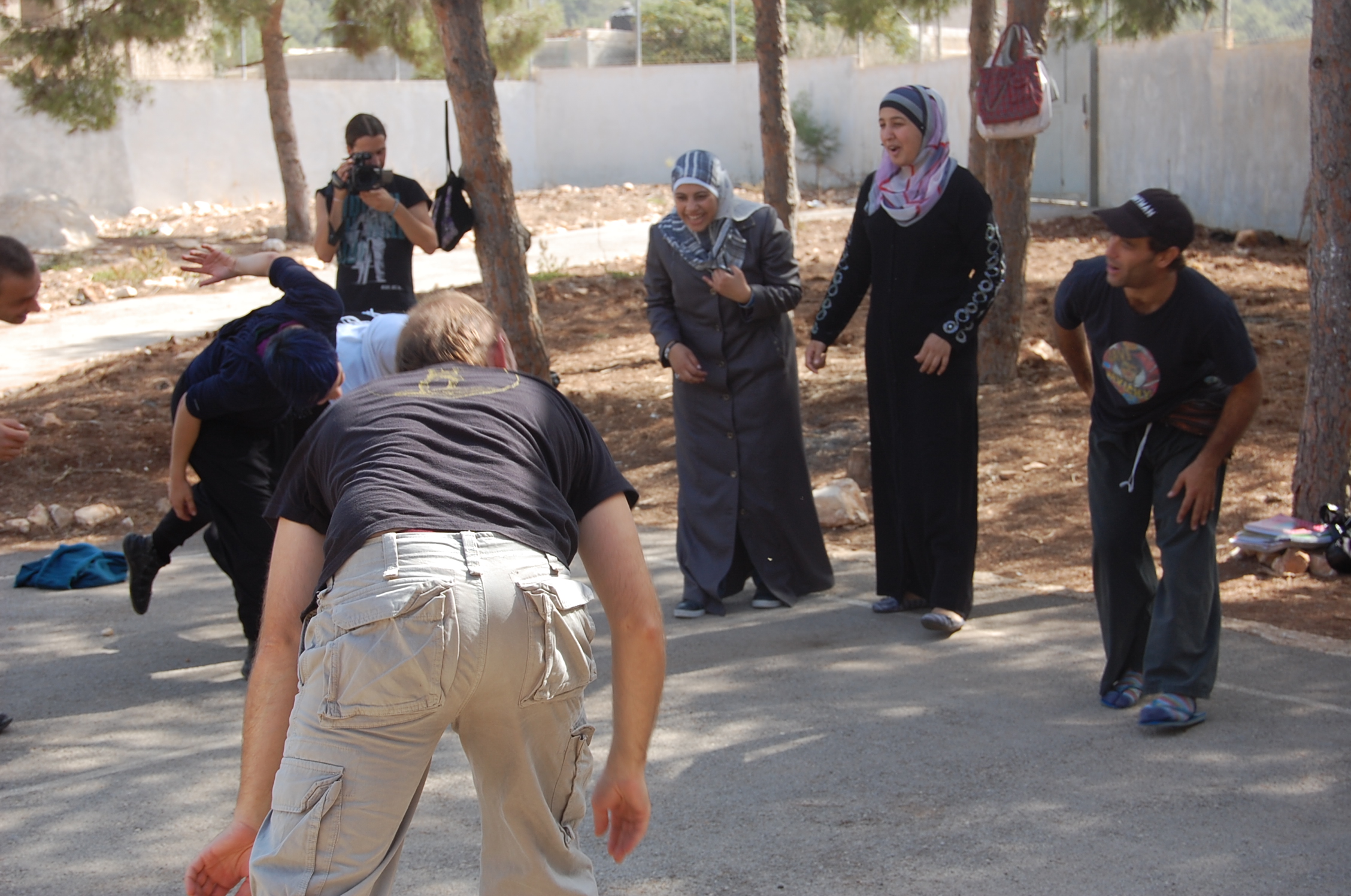 صورة ملونة من عروض من مهرجان "فيستيكلاون" أجريت في فلسطين بالتعاون مع "مدرسة سيرك فلسطين".