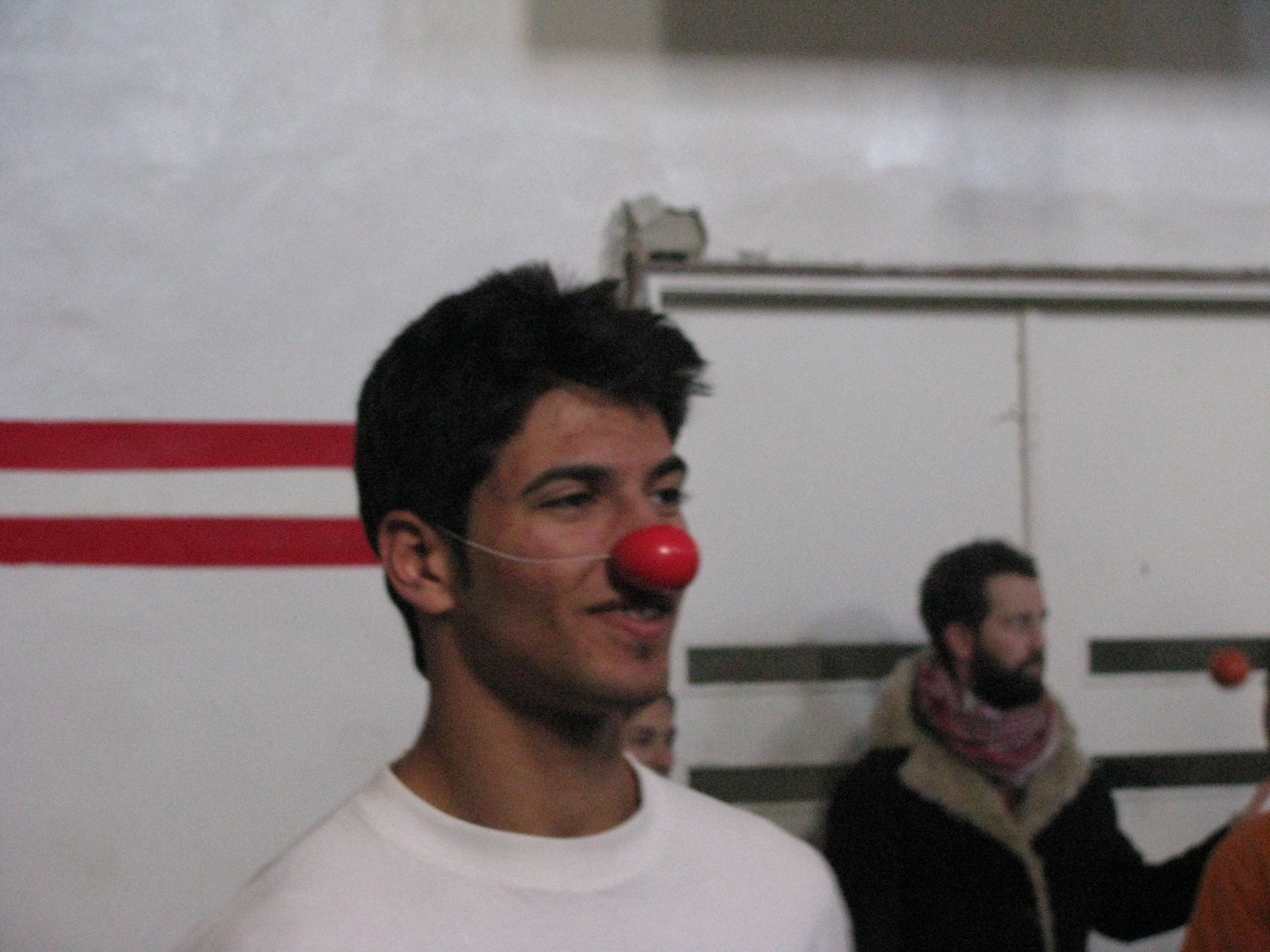 A colour photograph of a performance by an Irish team in coordination with the Palestinian Circus School.