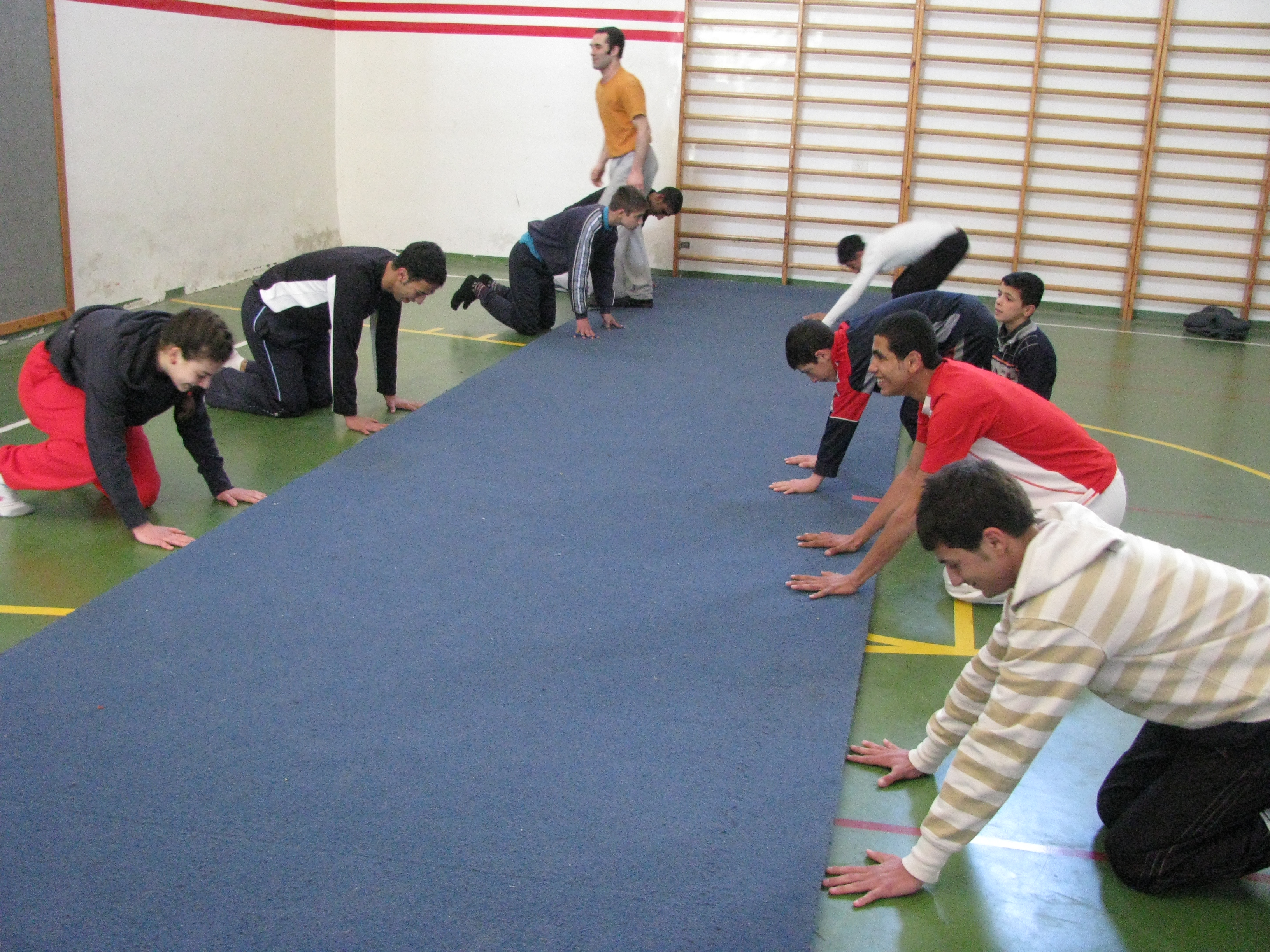 A colour photograph of a performance by an Irish team in coordination with the Palestinian Circus School.