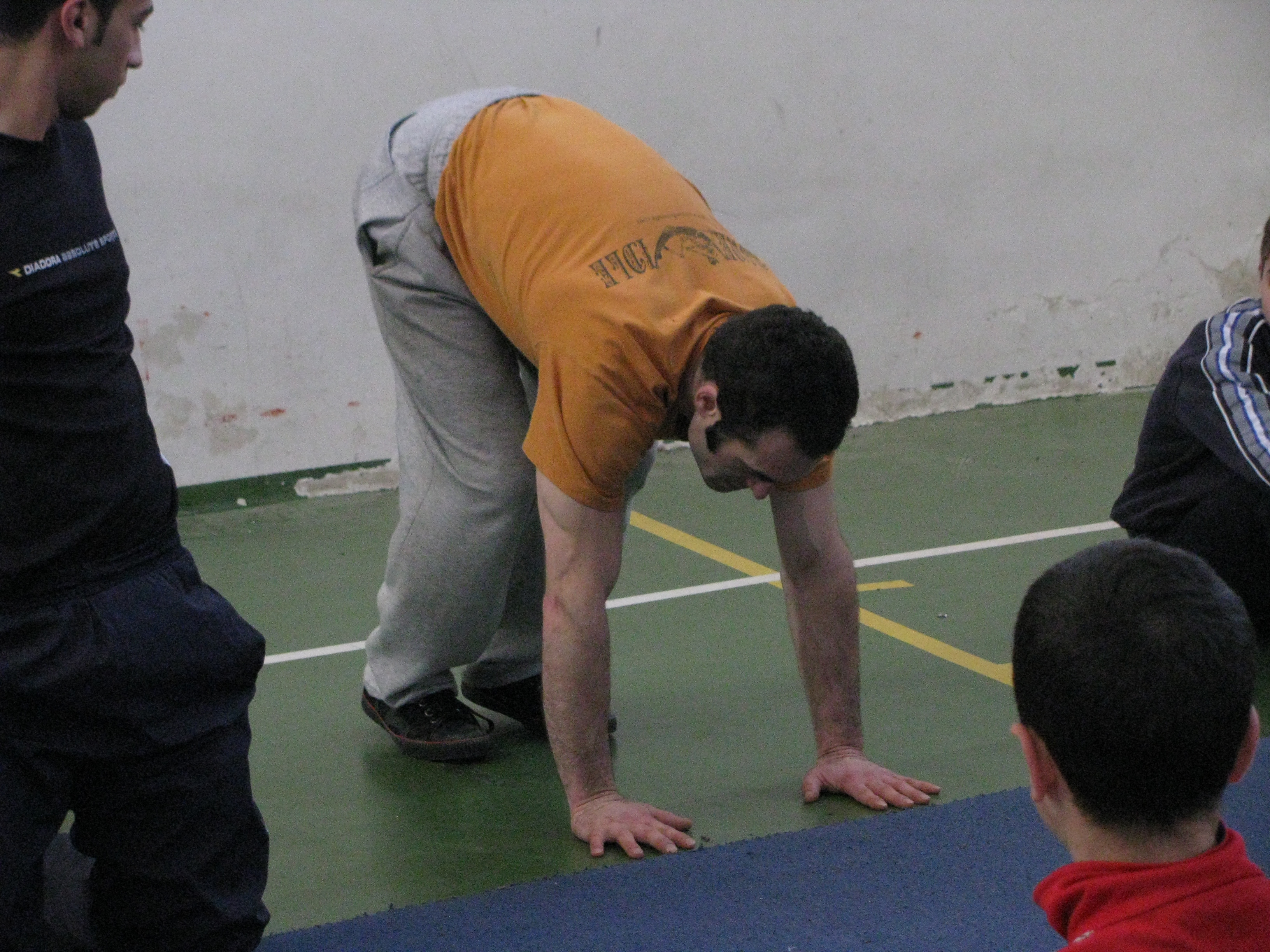 A colour photograph of a performance by an Irish team in coordination with the Palestinian Circus School.