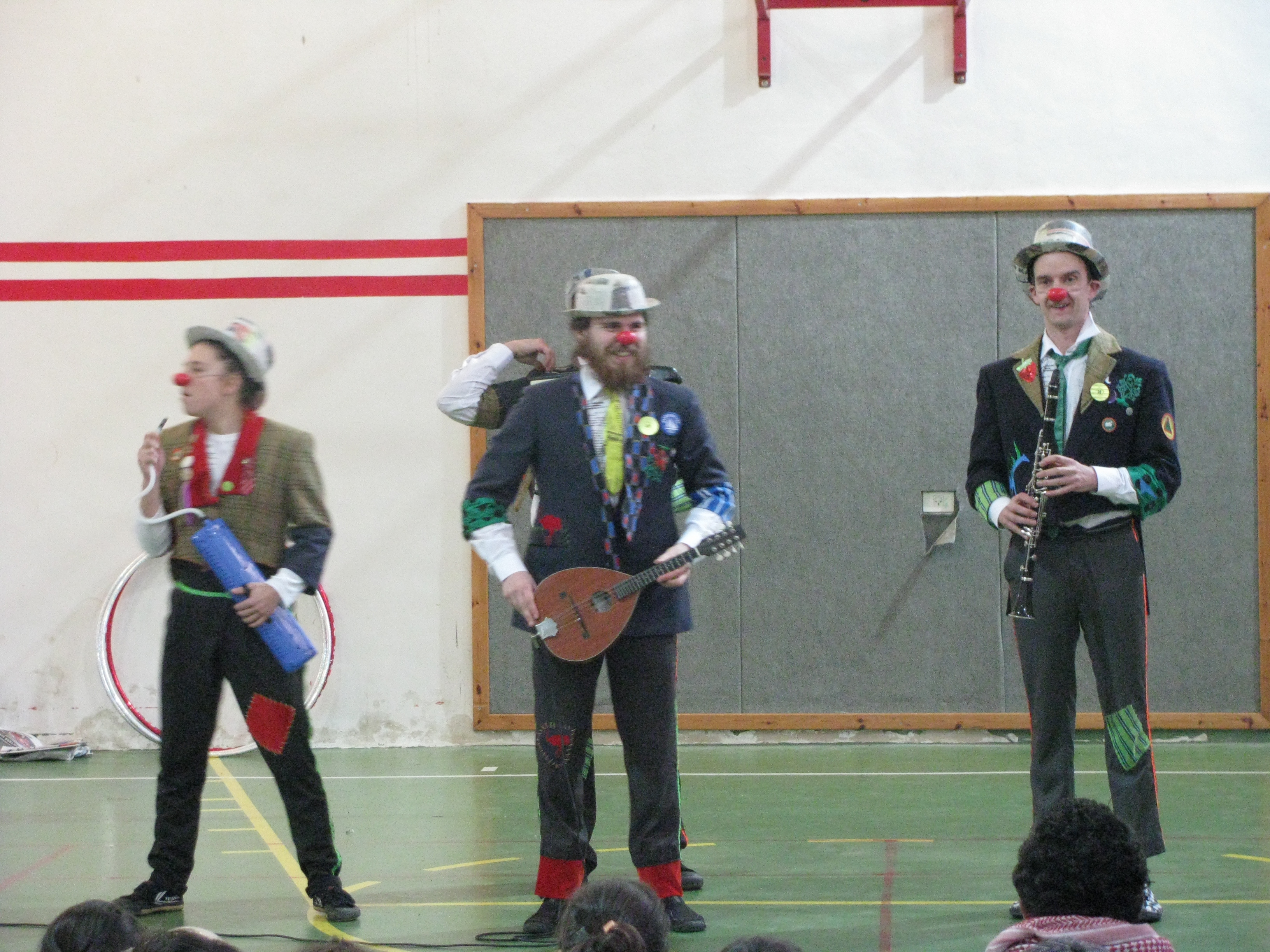 A colour photograph of a performance by an Irish team in coordination with the Palestinian Circus School.