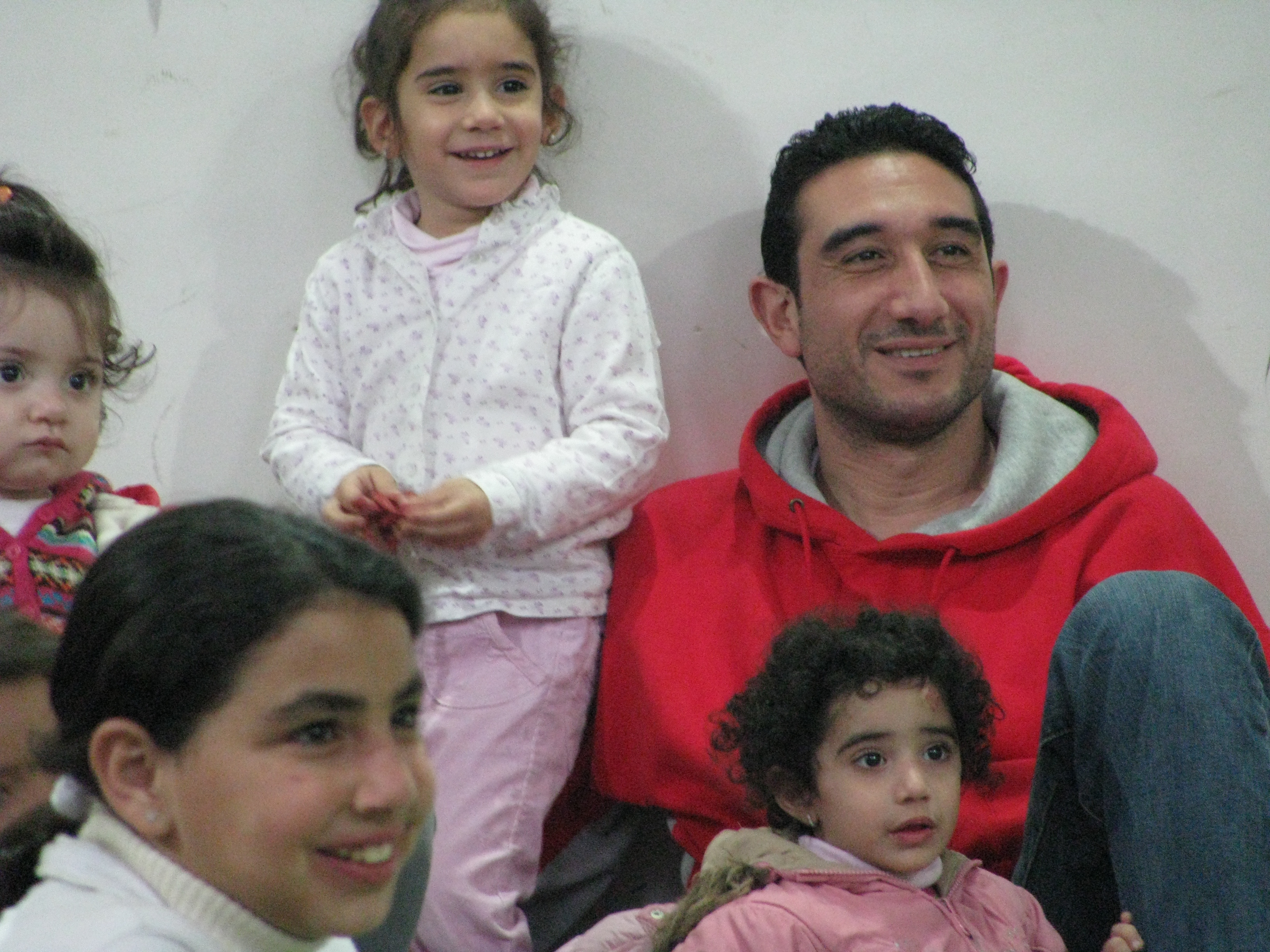 A colour photograph of a performance by an Irish team in coordination with the Palestinian Circus School.