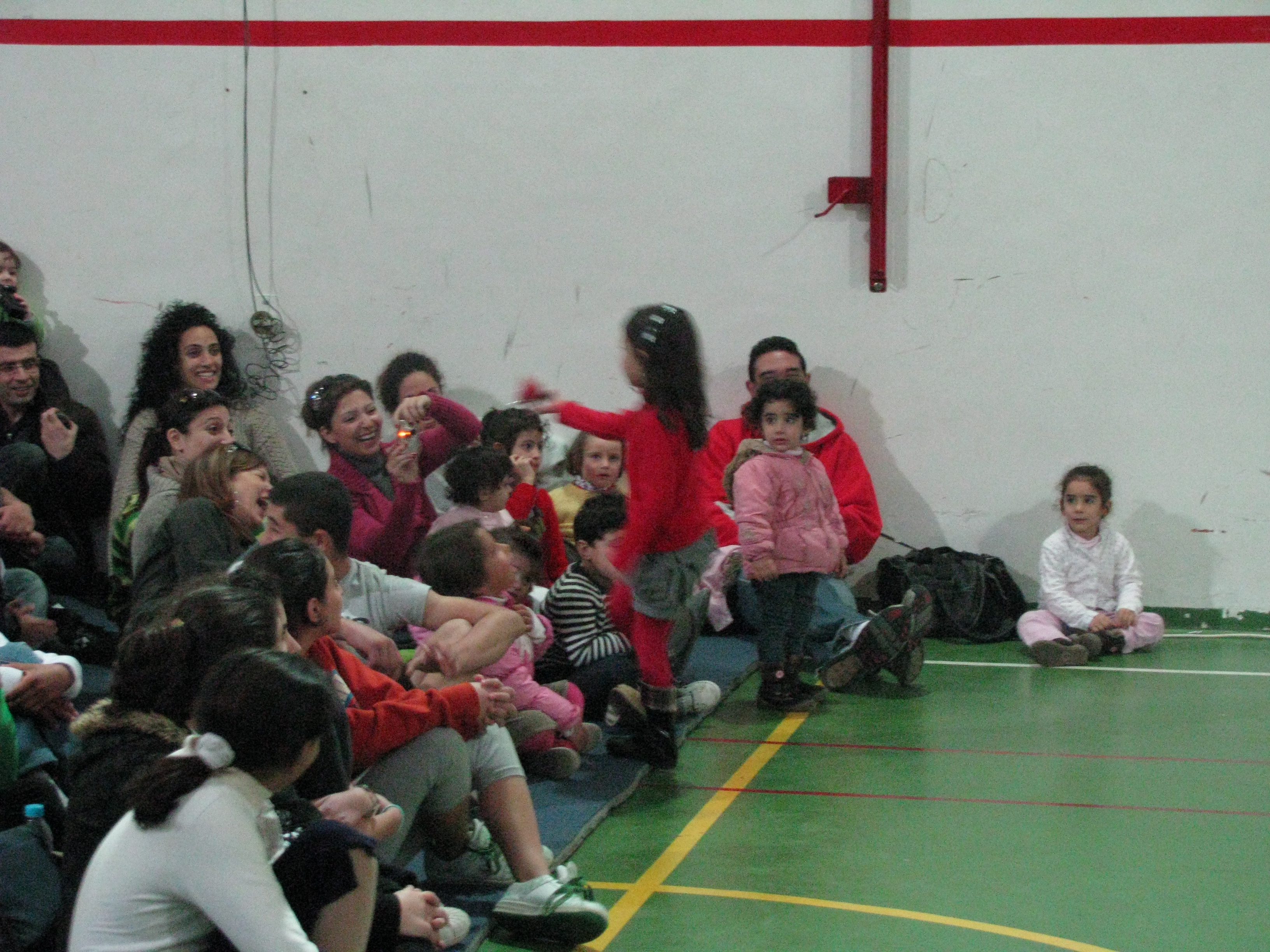 A colour photograph of a performance by an Irish team in coordination with the Palestinian Circus School.