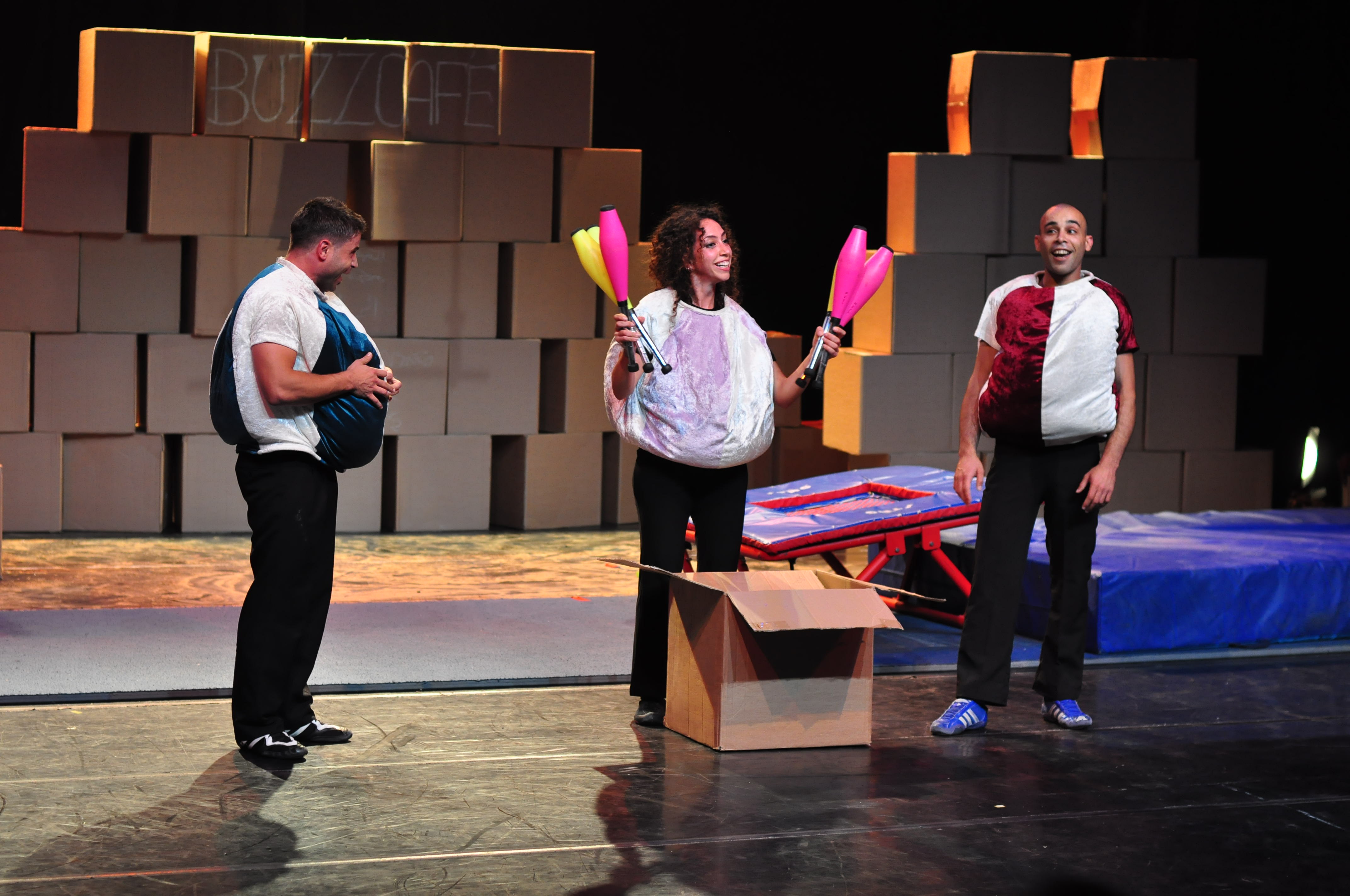 صورة ملونة من عرض "لوين" الذي قدمته "مدرسة سيرك فلسطين" و"لوين" هو الإنتاج الثاني لمدرسة سيرك فلسطين.