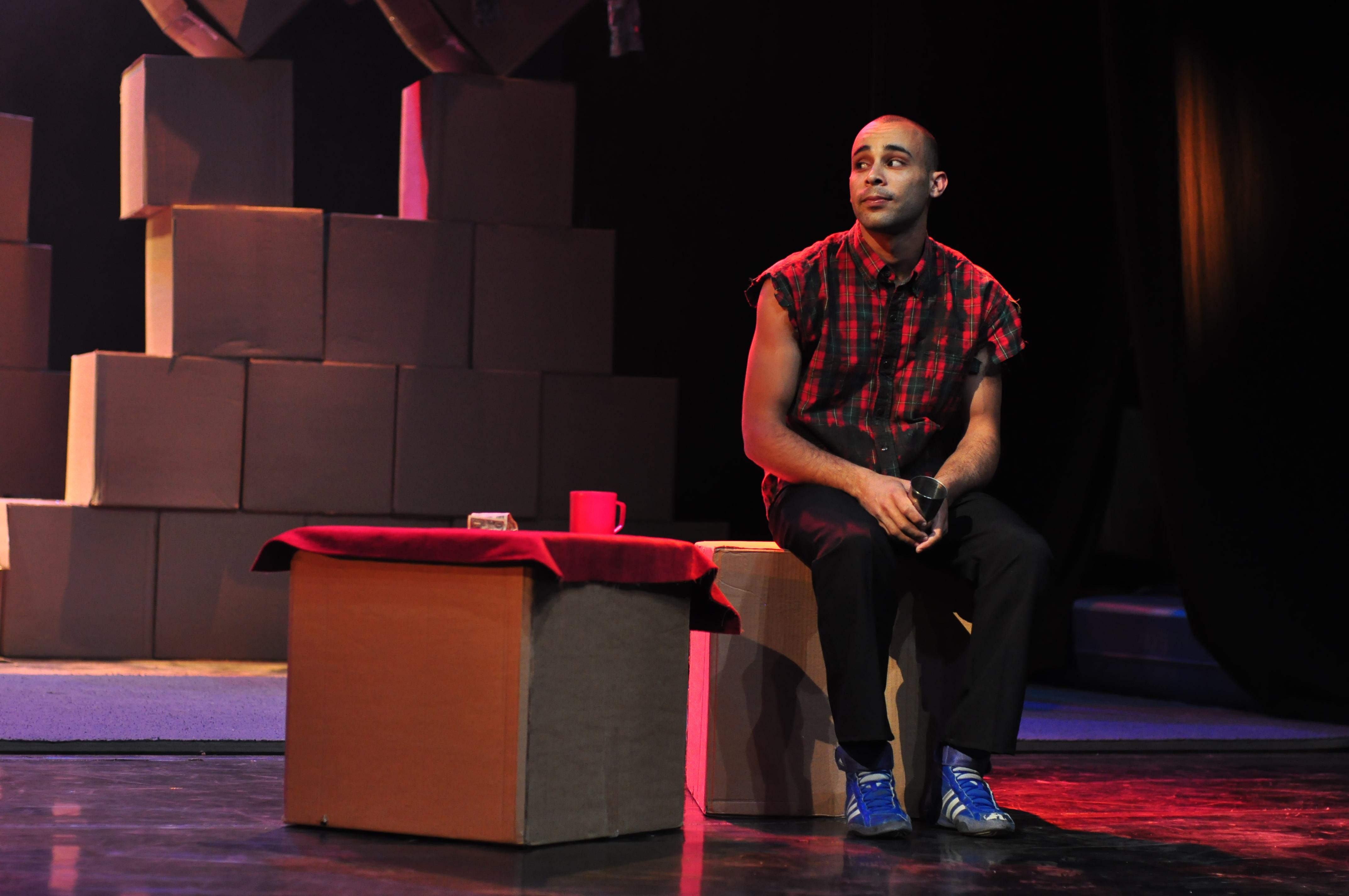 صورة ملونة من عرض "لوين" الذي قدمته "مدرسة سيرك فلسطين" و"لوين" هو الإنتاج الثاني لمدرسة سيرك فلسطين.