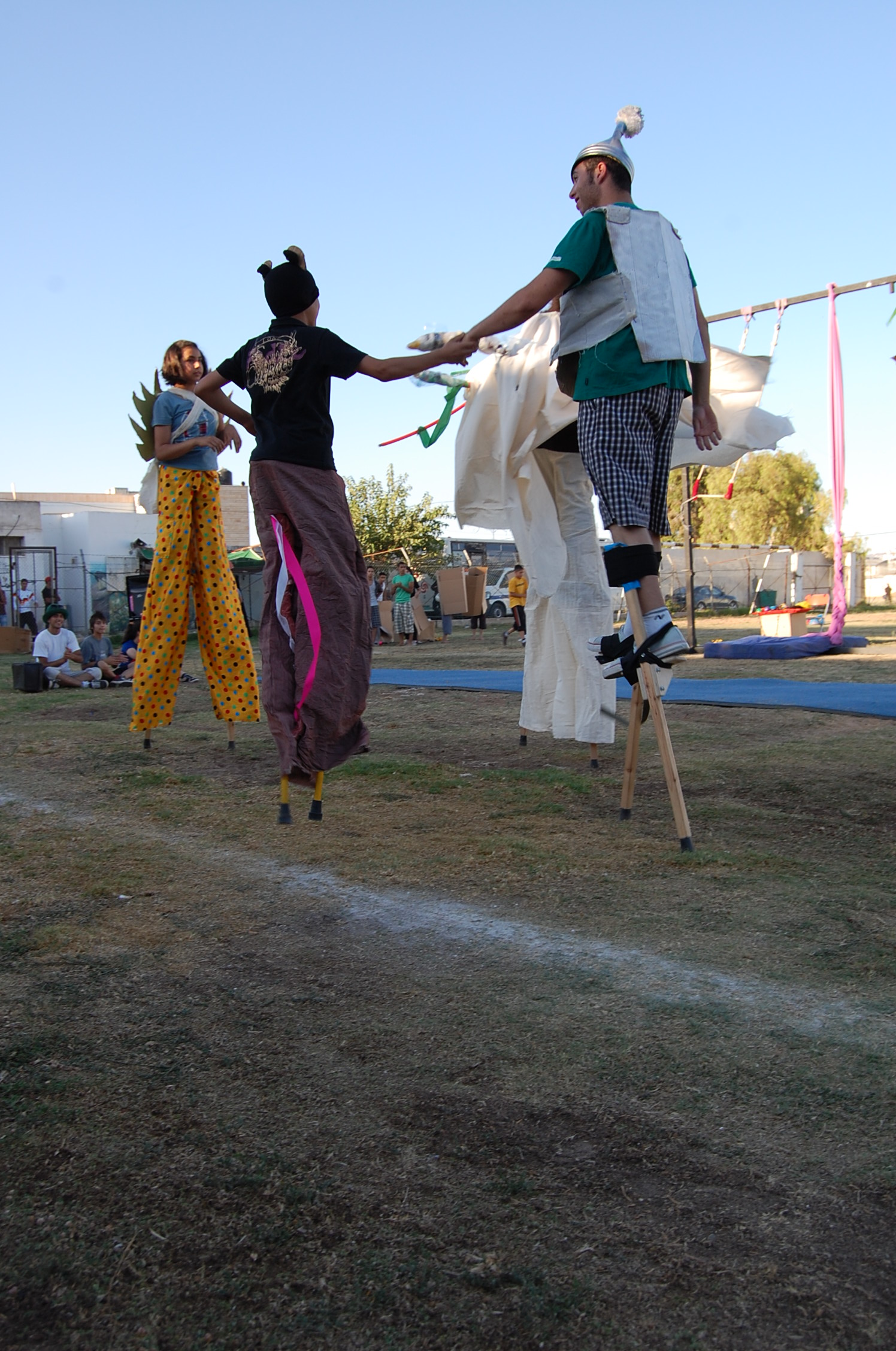 A colour photograph of the Palestine Circus School's production, "The Mobile Circus" in the Israeli-occupied city of Jenin in 2010. With a suite of training courses for all sections of society, the show featured a cast including, Ahmad Taleb, Alaʾ abu ar-Rub, Fady Zumurud, Hazar Azza, Laur Ṣadeq, Marah Ashmar, Mayrouby Makhluq, Muhammad abu ar-Rub, Muhammad abu Kishek, Muhammad abu Taleb, Muhammad al-Azza, Muhammad Ghayth, Muʿtaṣem Ghayth, and Yazan ʿWaydat.