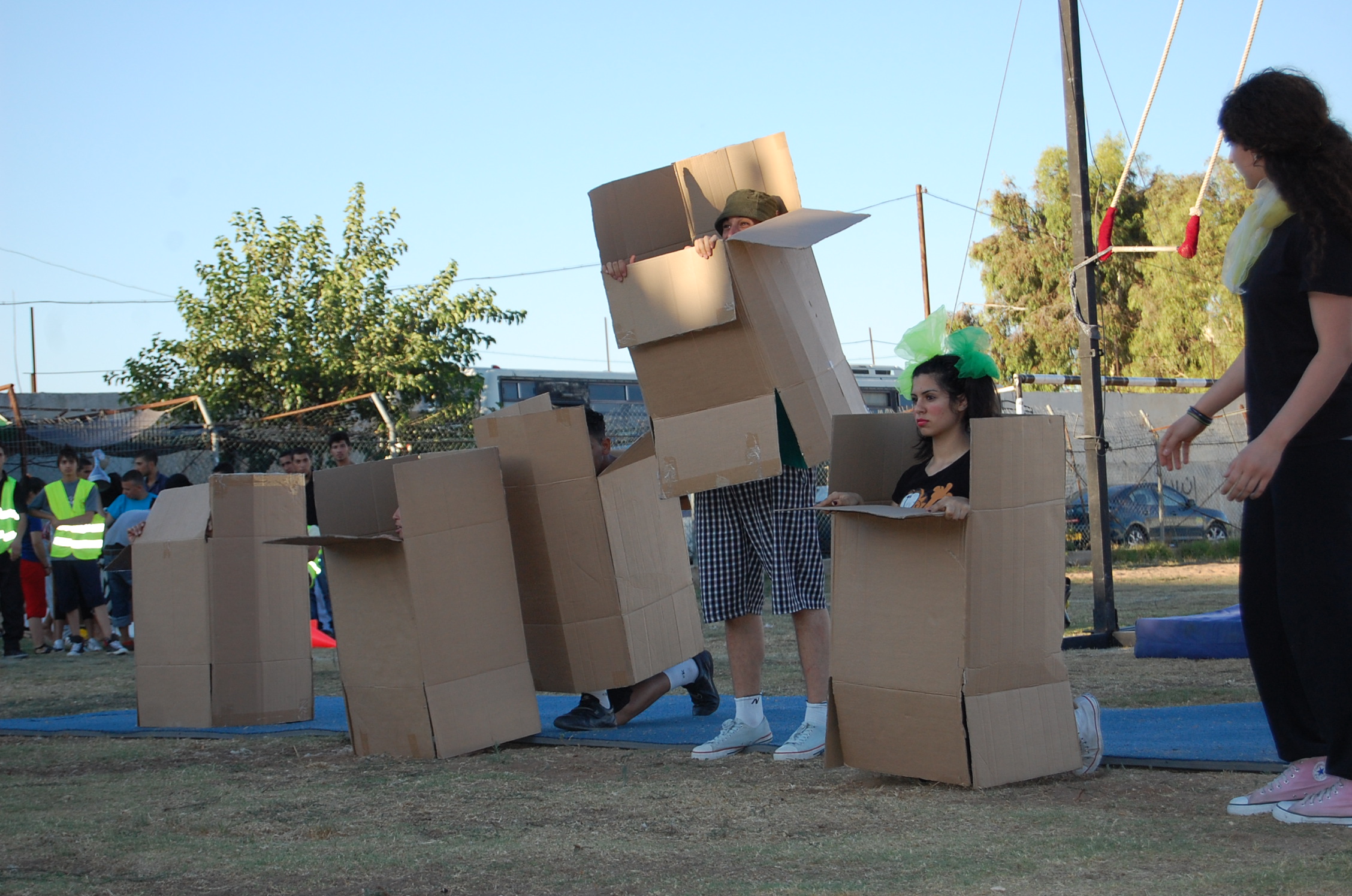 A colour photograph of the Palestine Circus School's production, "The Mobile Circus" in the Israeli-occupied city of Jenin in 2010. With a suite of training courses for all sections of society, the show featured a cast including, Ahmad Taleb, Alaʾ abu ar-Rub, Fady Zumurud, Hazar Azza, Laur Ṣadeq, Marah Ashmar, Mayrouby Makhluq, Muhammad abu ar-Rub, Muhammad abu Kishek, Muhammad abu Taleb, Muhammad al-Azza, Muhammad Ghayth, Muʿtaṣem Ghayth, and Yazan ʿWaydat.