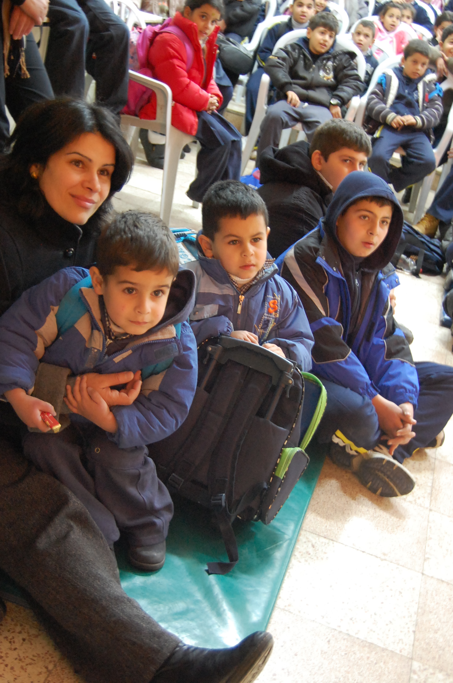 A colour photograph of a performance by a Belgian circus troupe hosted by the Palestinian Circus School.