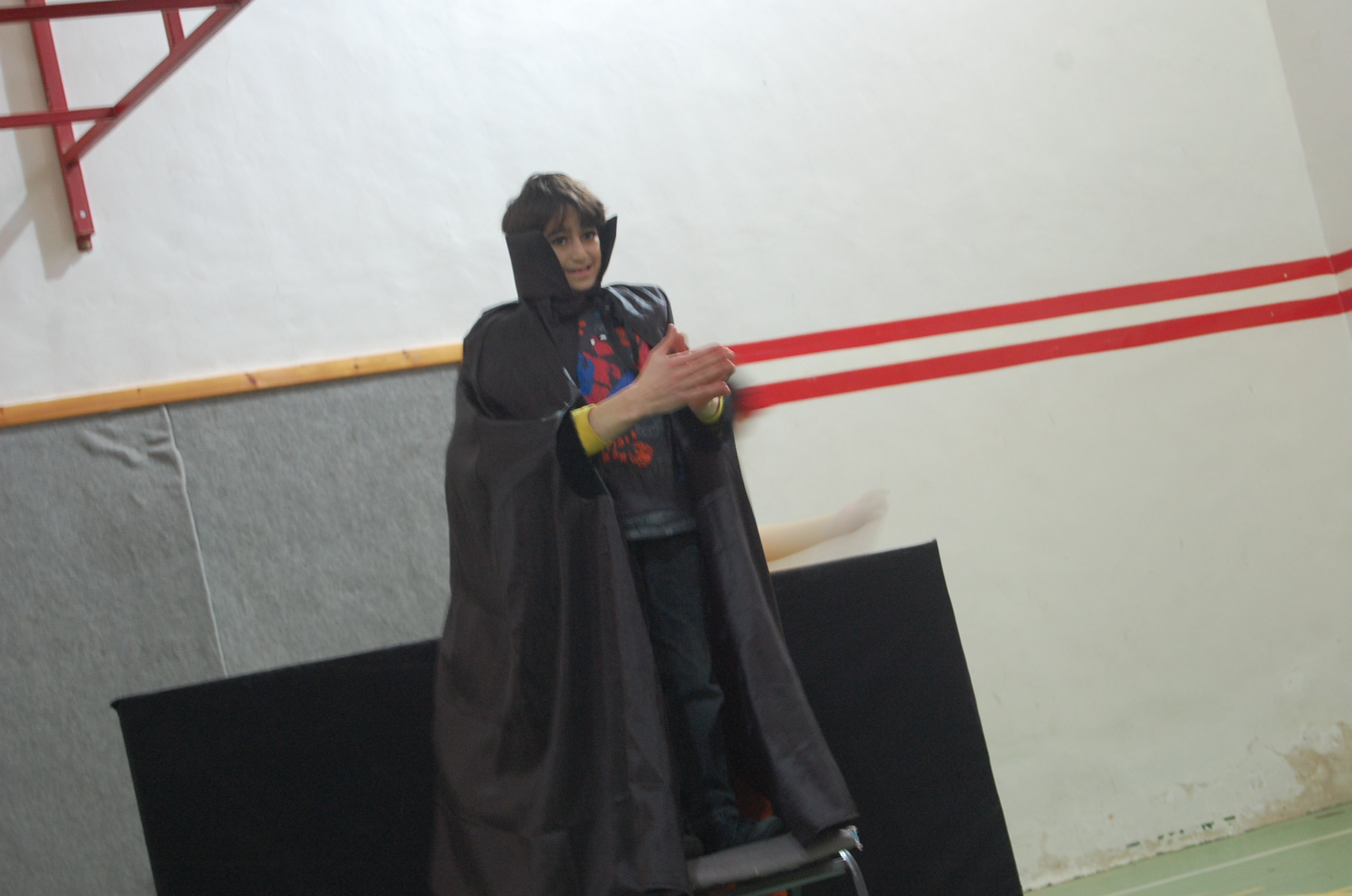 A colour photograph of a performance by a Belgian circus troupe hosted by the Palestinian Circus School.