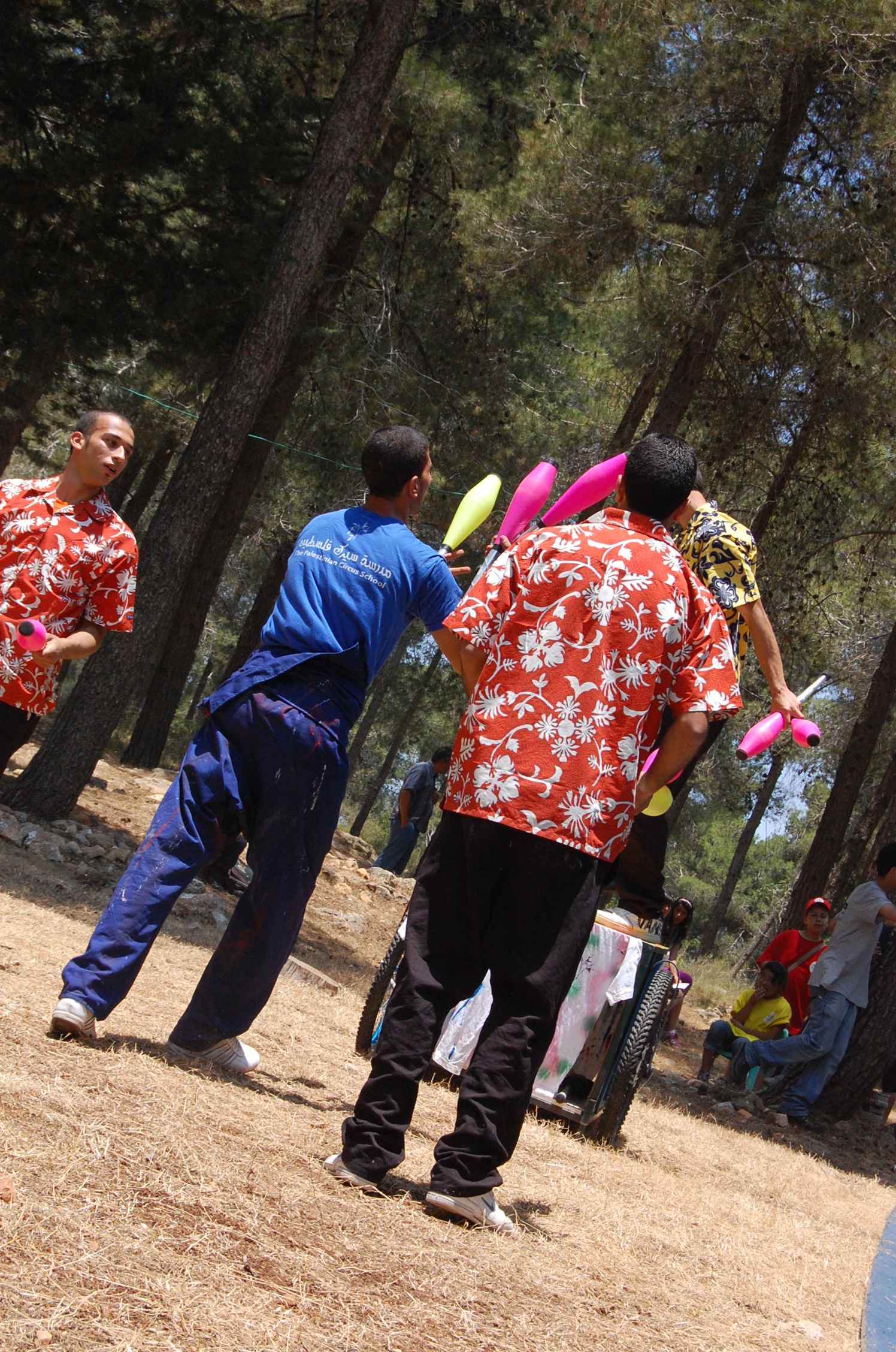 A colour photograph of the "Dreams for Sale" production performed by the Palestinian Circus School, at the Star Mountain Center. "Dreams for Sale" is the Palestinian Circus School's third production, created in 2010.