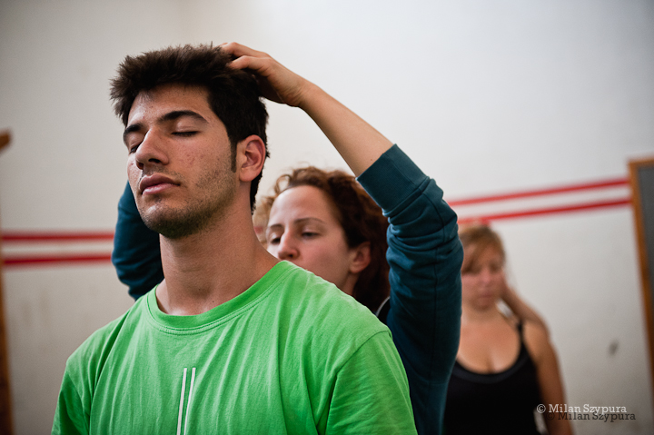 صورة ملونة تظهر جانبًا من تدريبات المدرسة الصيفيّة التابعة لمدرسة سيرك فلسطين عام 2011.