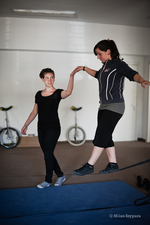 صورة ملونة تظهر جانبًا من تدريبات المدرسة الصيفيّة التابعة لمدرسة سيرك فلسطين عام 2011.