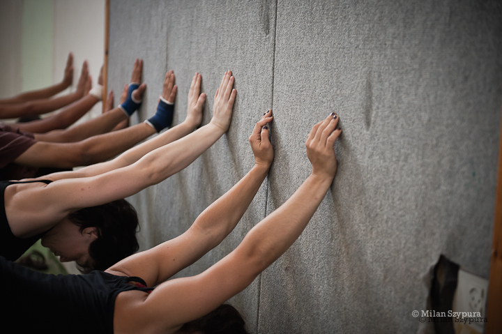 صورة ملونة تظهر جانبًا من تدريبات المدرسة الصيفيّة التابعة لمدرسة سيرك فلسطين عام 2011.