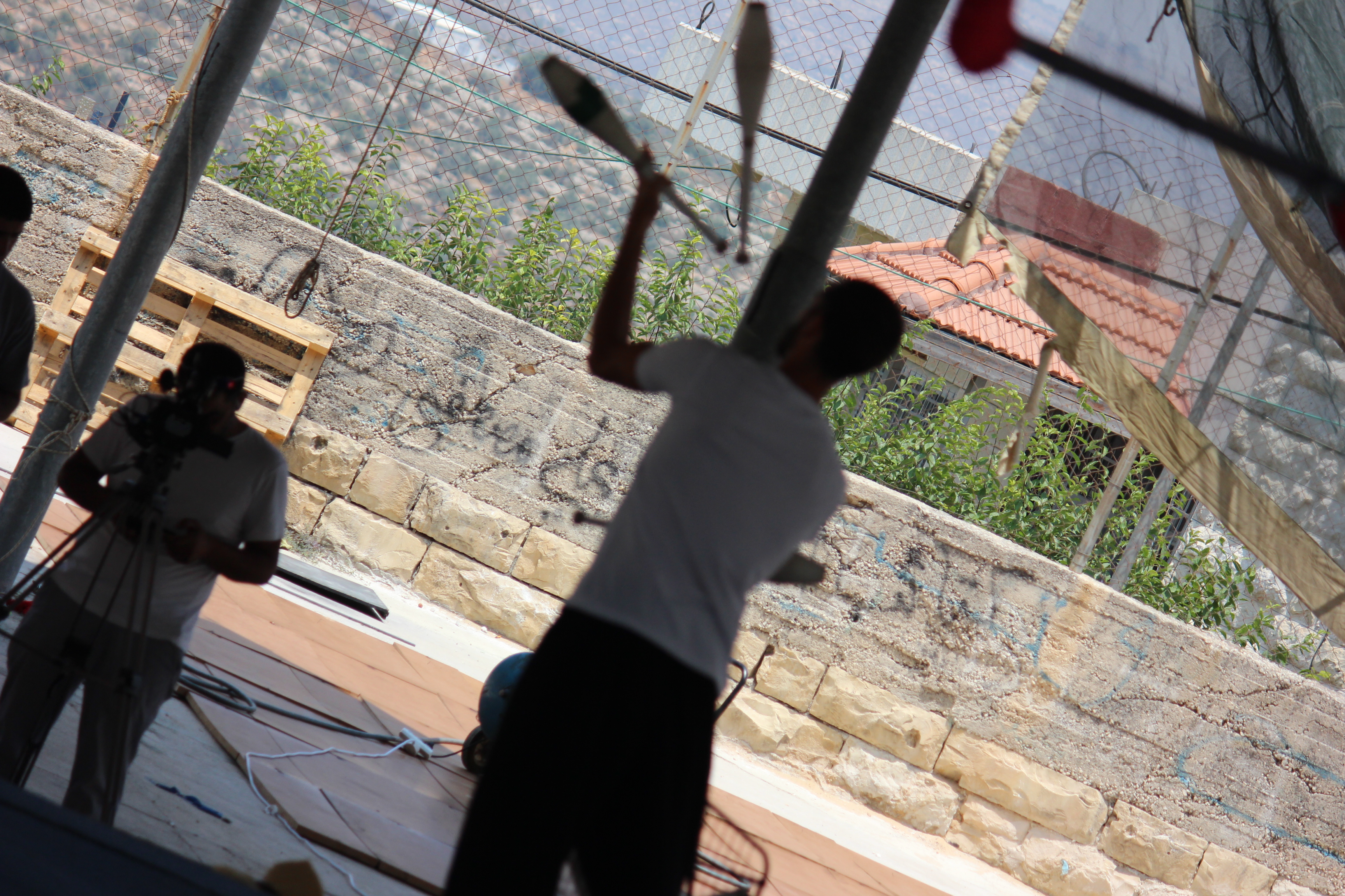 Taken in 2012, this is a colour photograph of a summer school that was organised by the Palestinian Circus School (PCS) in Birzeit, north of Israeli-occupied Ramallah.