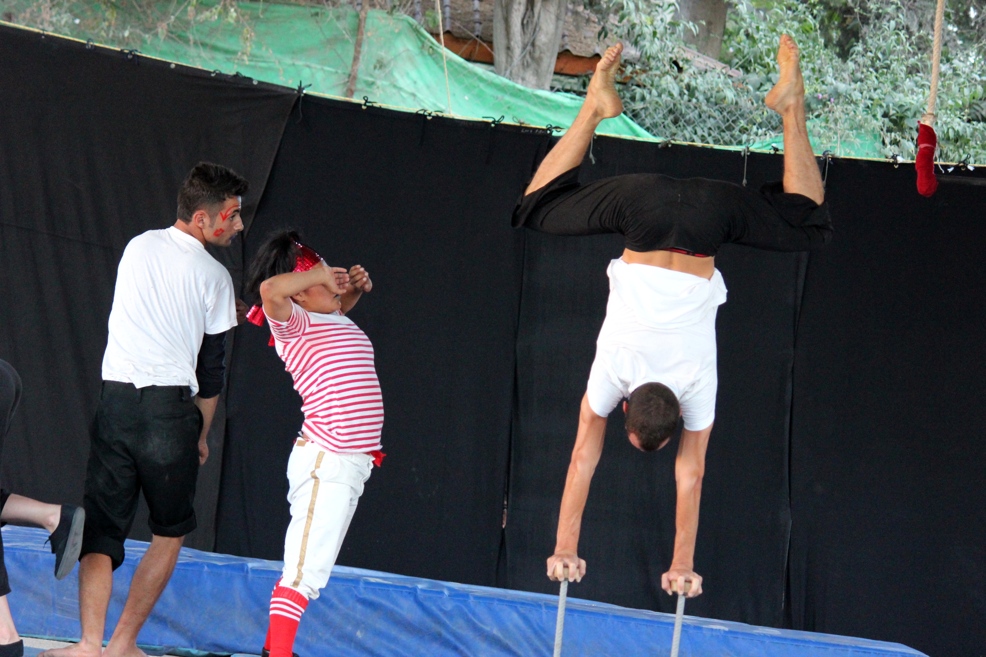 صورة ملوّنة وغيْر مؤرخة تُظهر جانبًا من تدريبات مدرسة سيرك فلسطين.