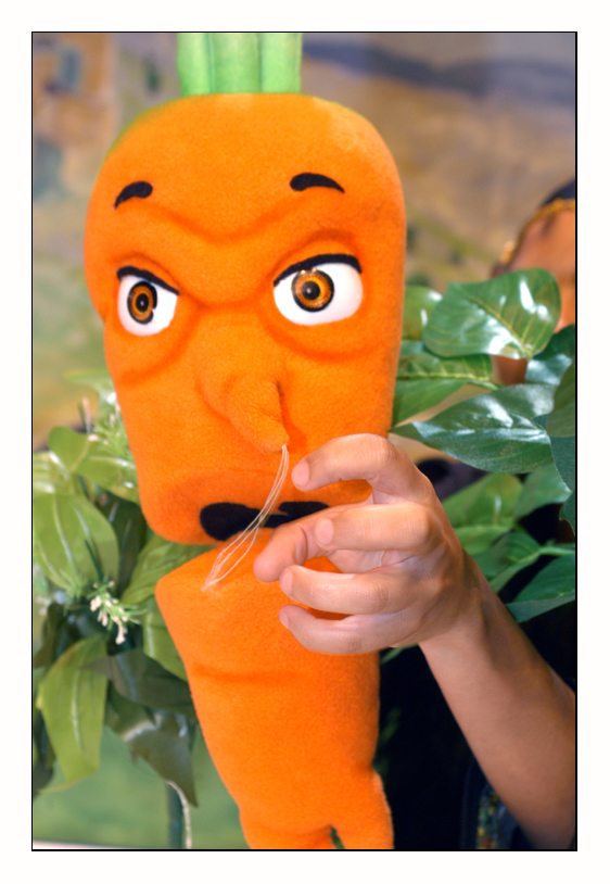 صورة ملونة من عرض مسرحية "مغامرات خضرا" في مسرح وسينماتك القصبة، شارك في تمثيلها: حسام أبو عيشة، دورين منير، ورجائي صندوقة.