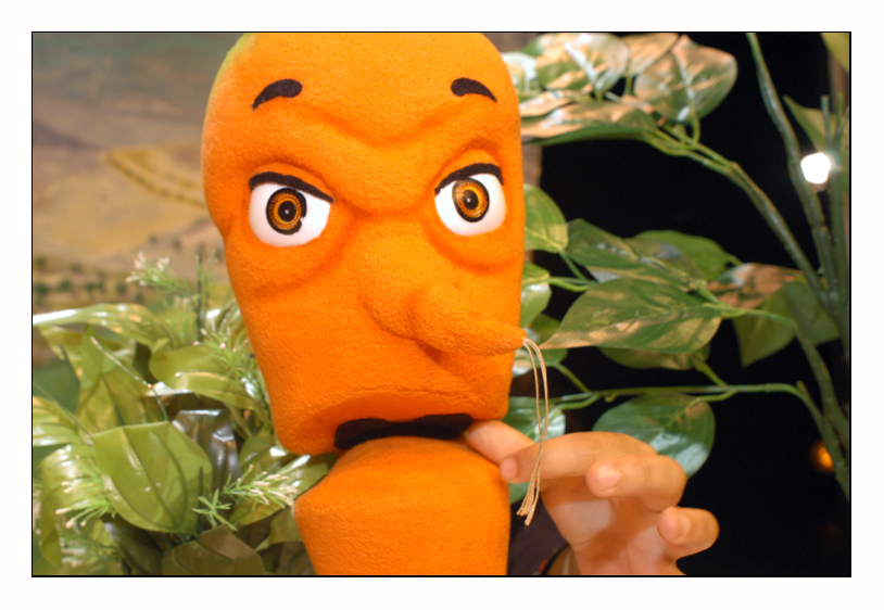 صورة ملونة من عرض مسرحية "مغامرات خضرا" في مسرح وسينماتك القصبة، شارك في تمثيلها: حسام أبو عيشة، دورين منير، ورجائي صندوقة.