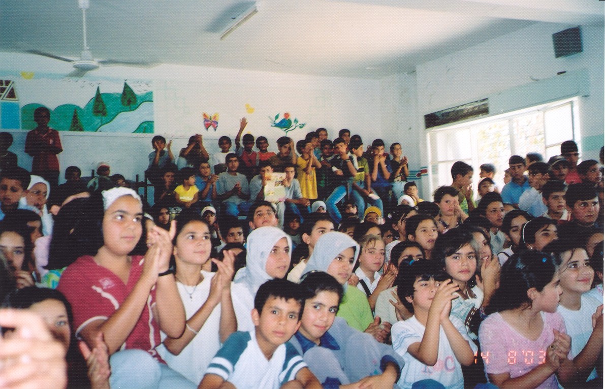 صورة ملونة من عرض مسرحي للأطفال لمسرح وسينماتك القصبة في مدينة الخليل.