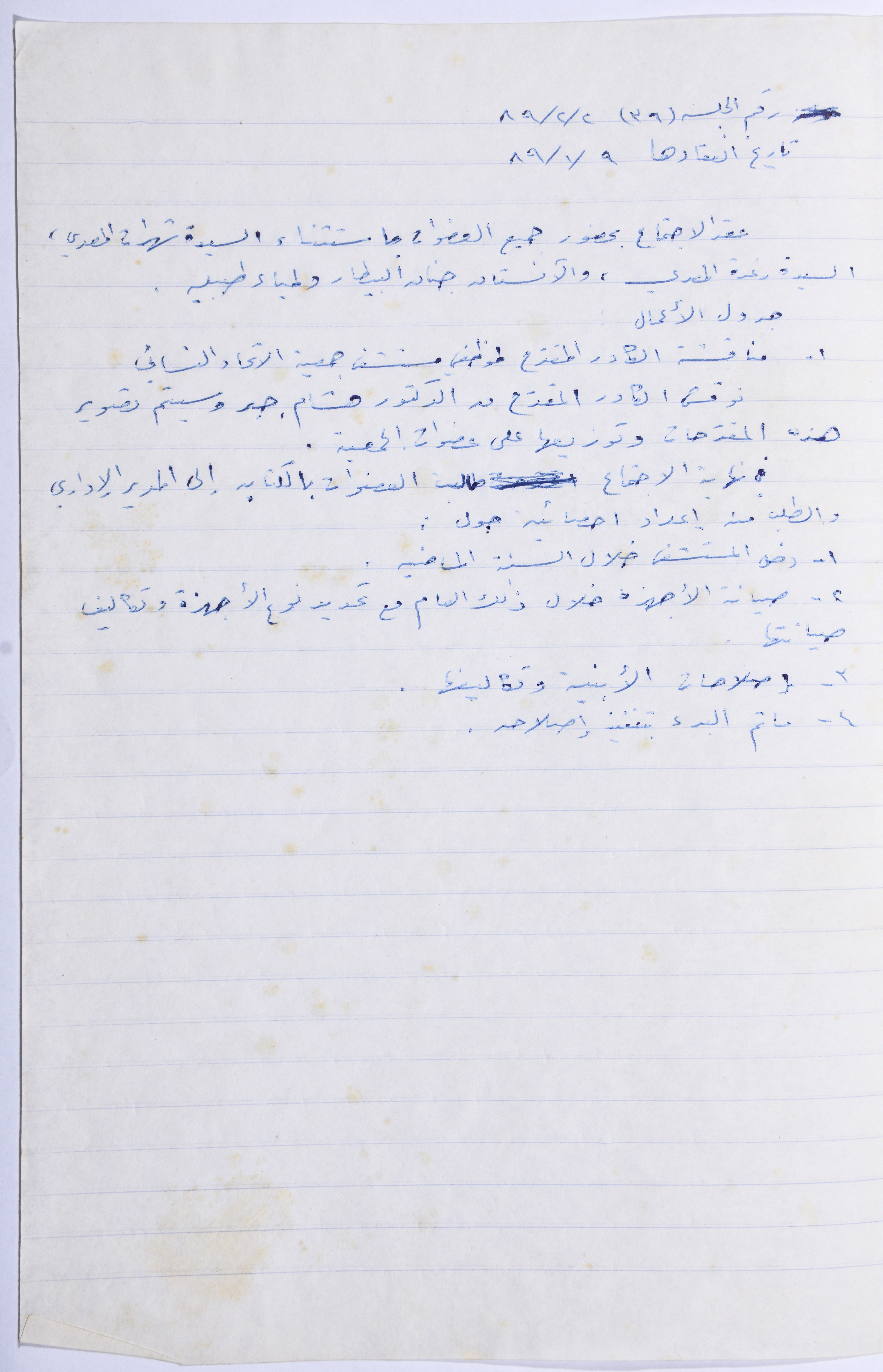 Minutes of the Meeting of the Administrative Body of the Arab Women Union Society, Nablus, 1989