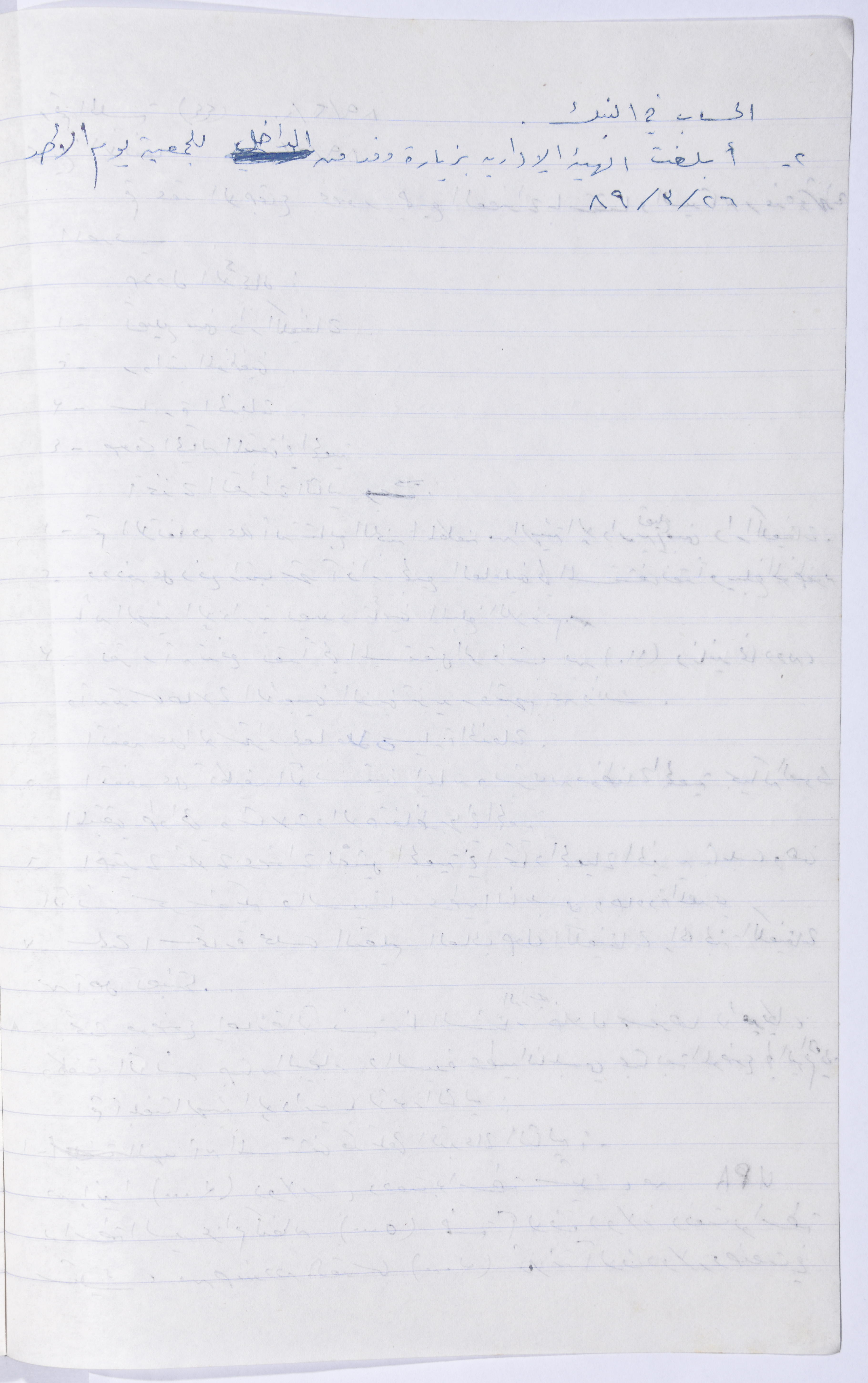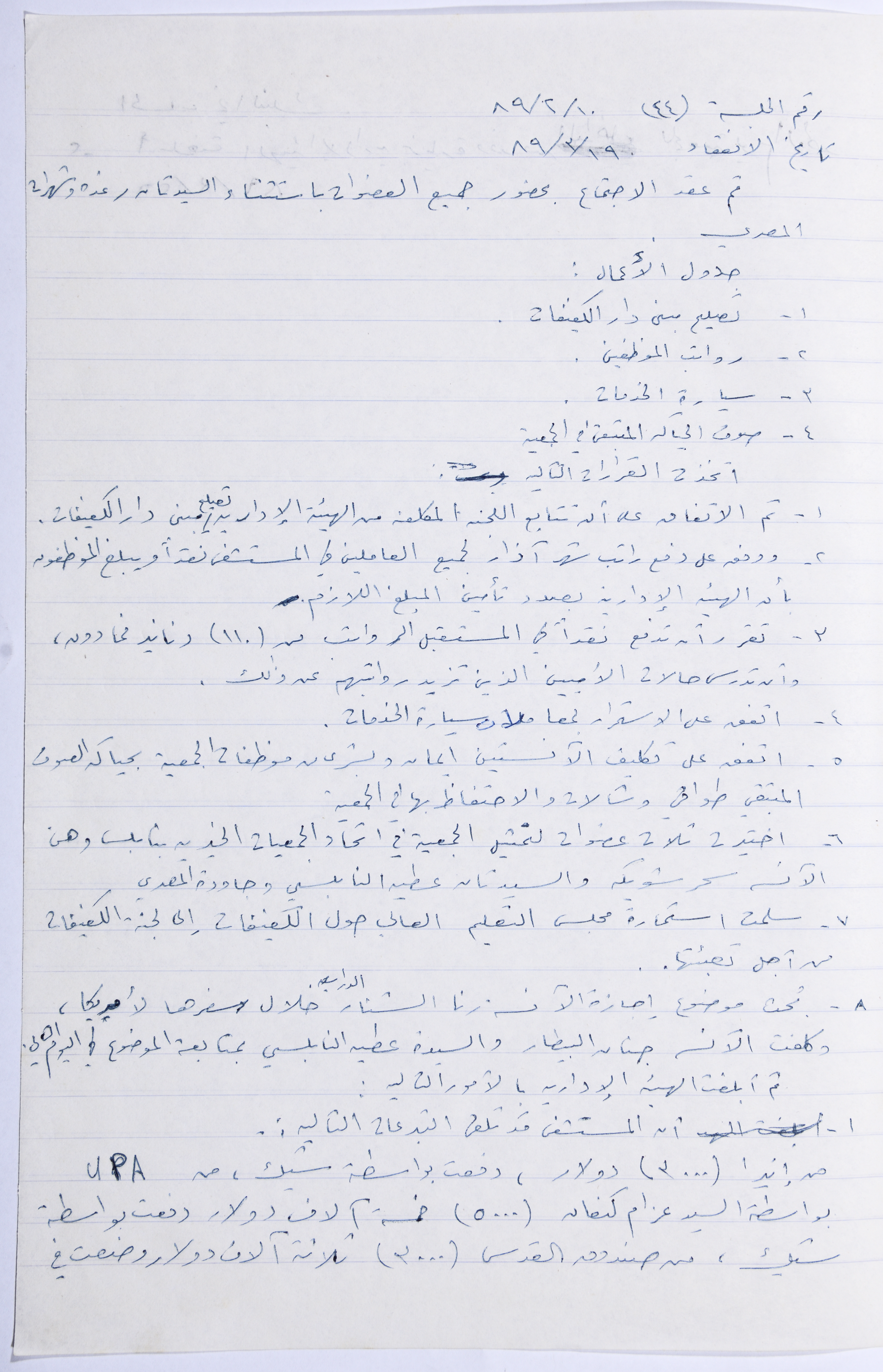 Minutes of the Meeting of the Administrative Body of the Arab Women Union Society, Nablus, 1989