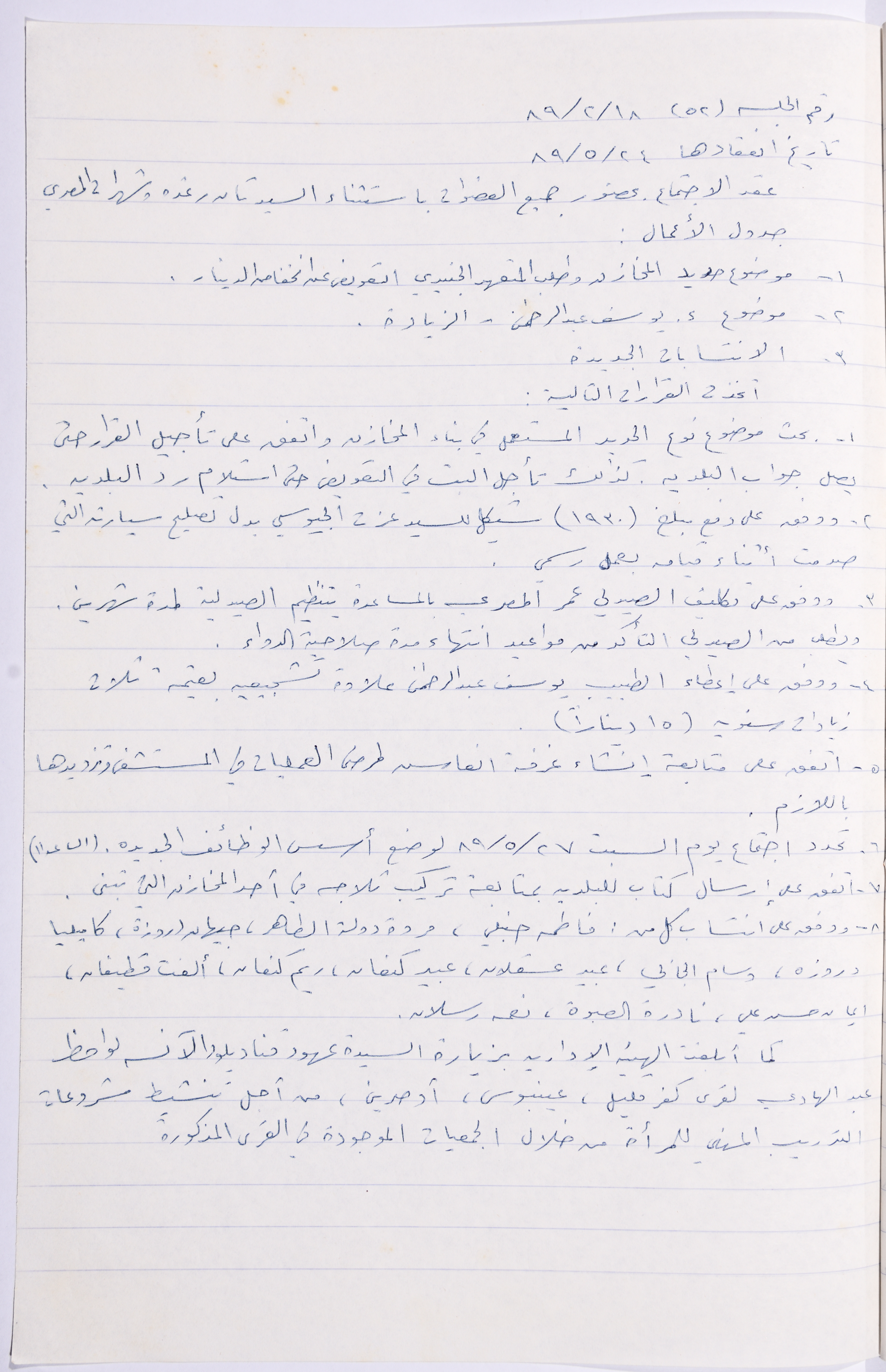 Minutes of the Meeting of the Administrative Body of the Arab Women Union Society, Nablus, 1989