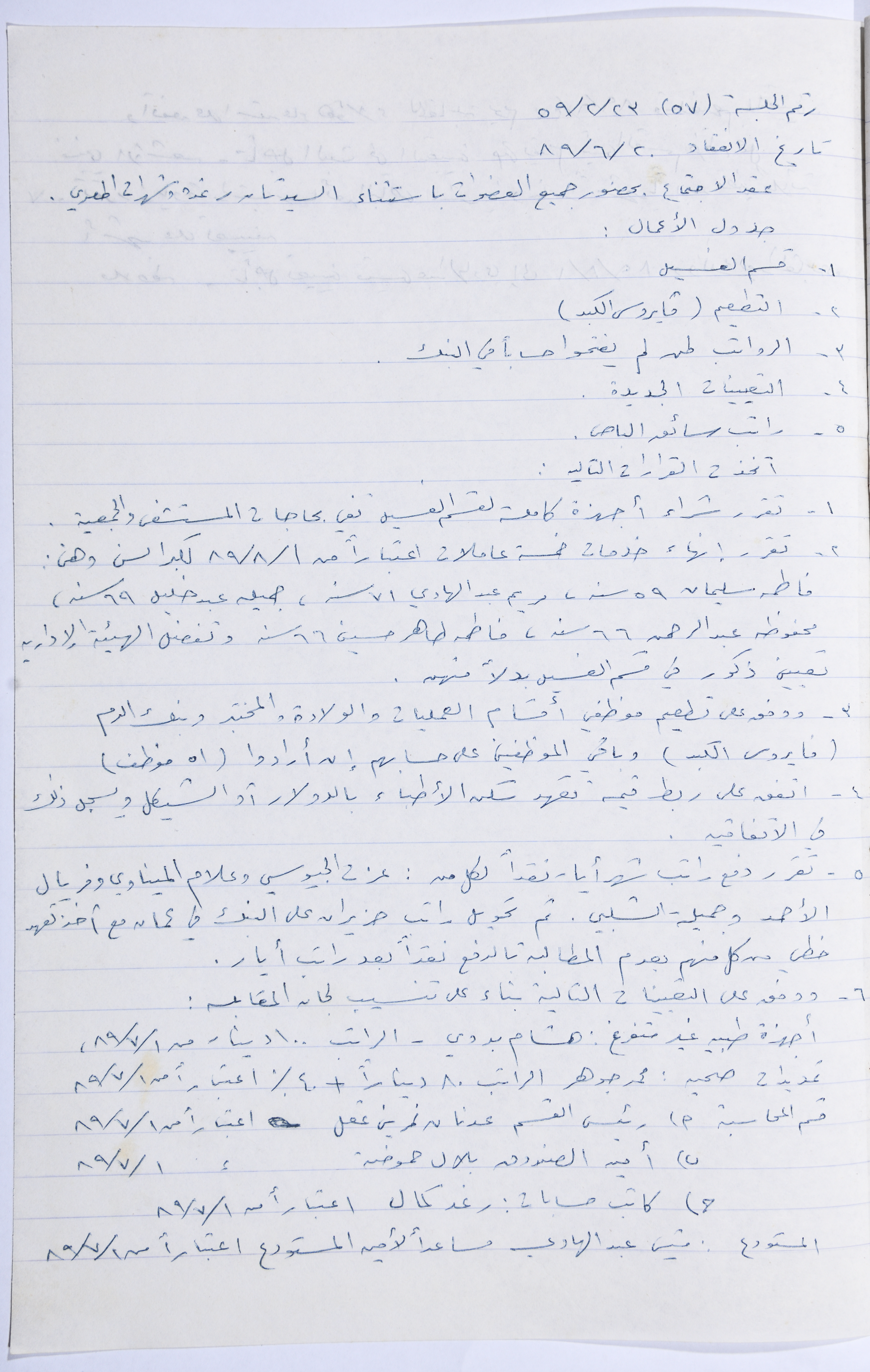 Minutes of the Meeting of the Administrative Body of the Arab Women Union Society, Nablus, 1989