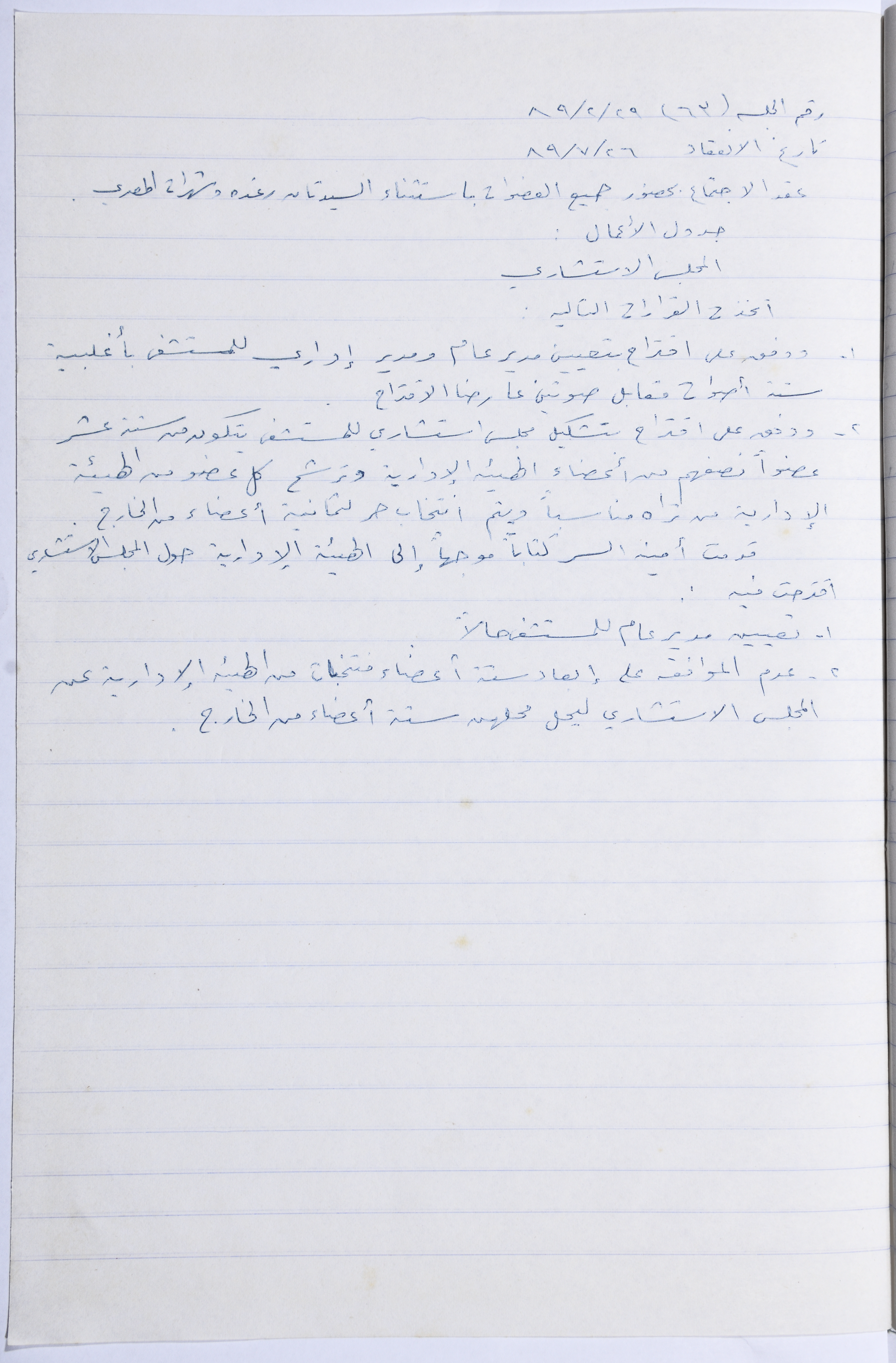 Minutes of the Meeting of the Administrative Body of the Arab Women Union Society, Nablus, 1989